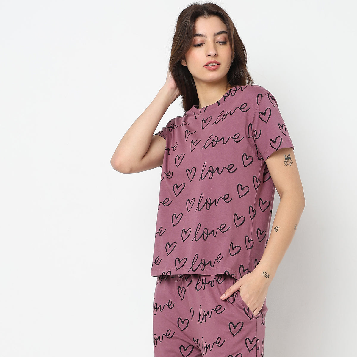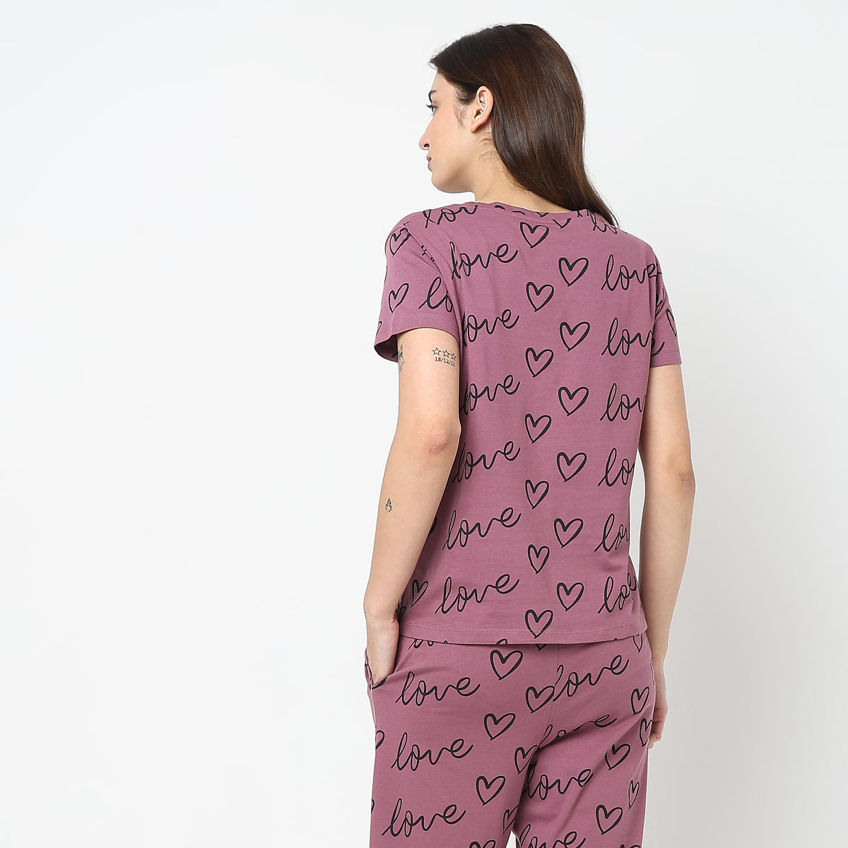 Knitted Printed T-Shirt With Pyjama Sleepwear Set