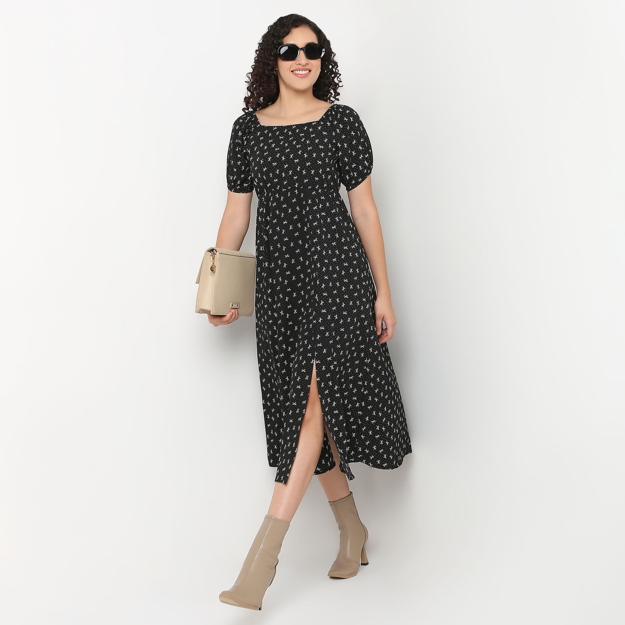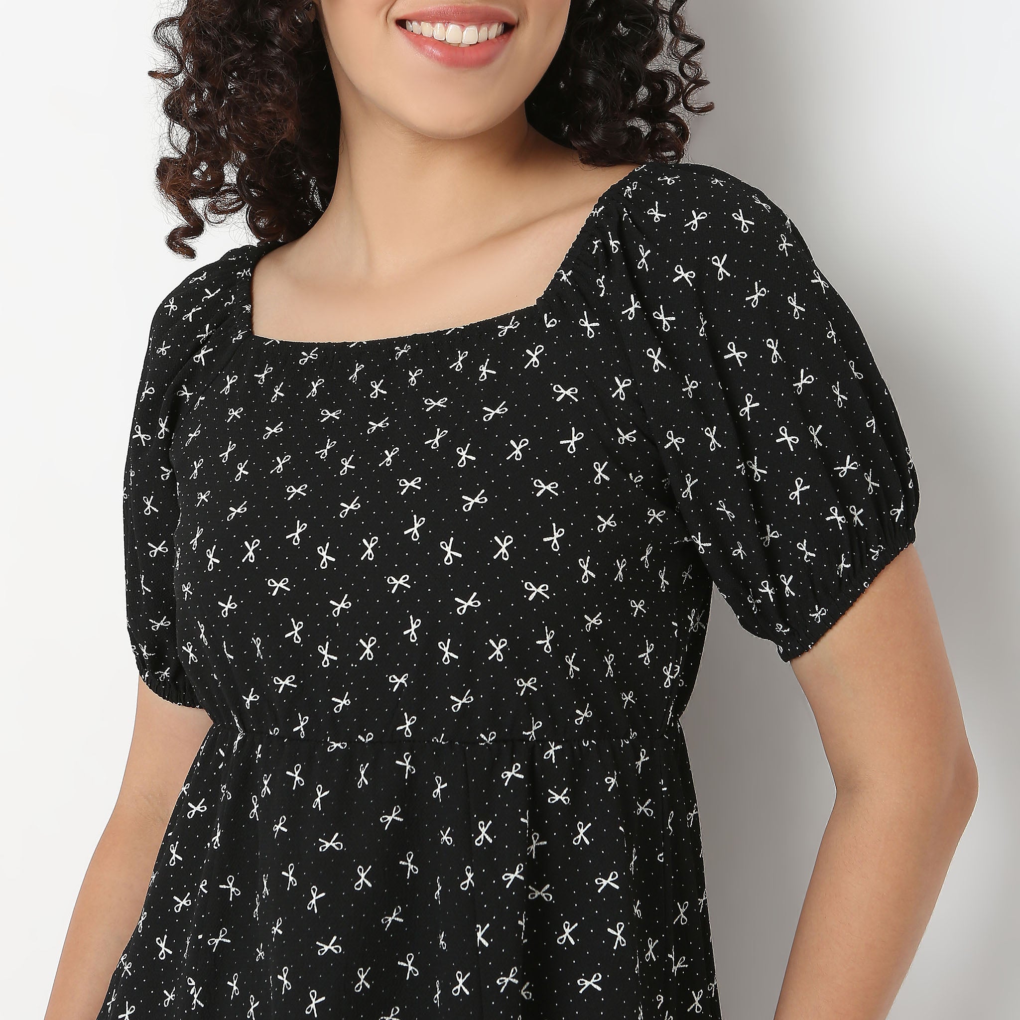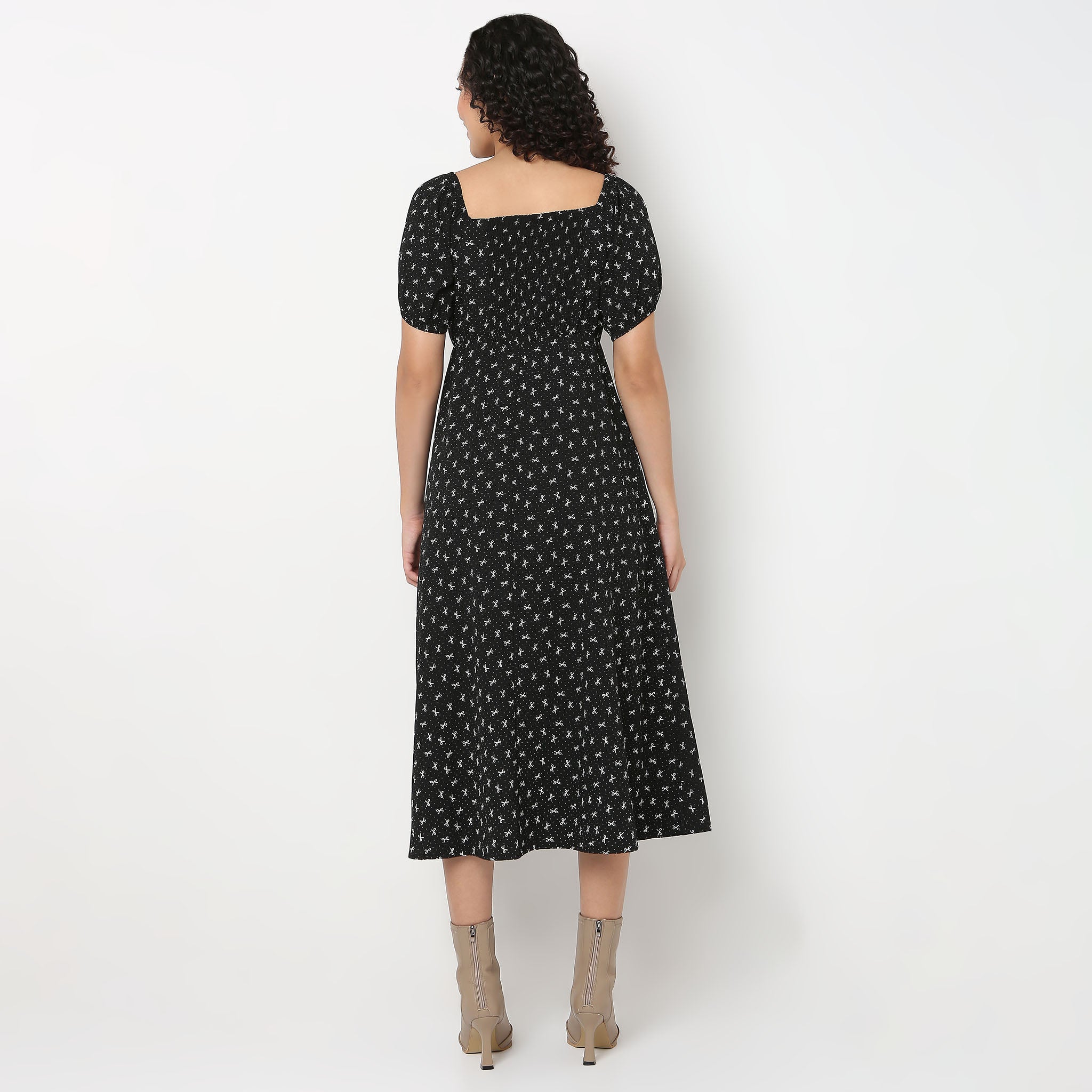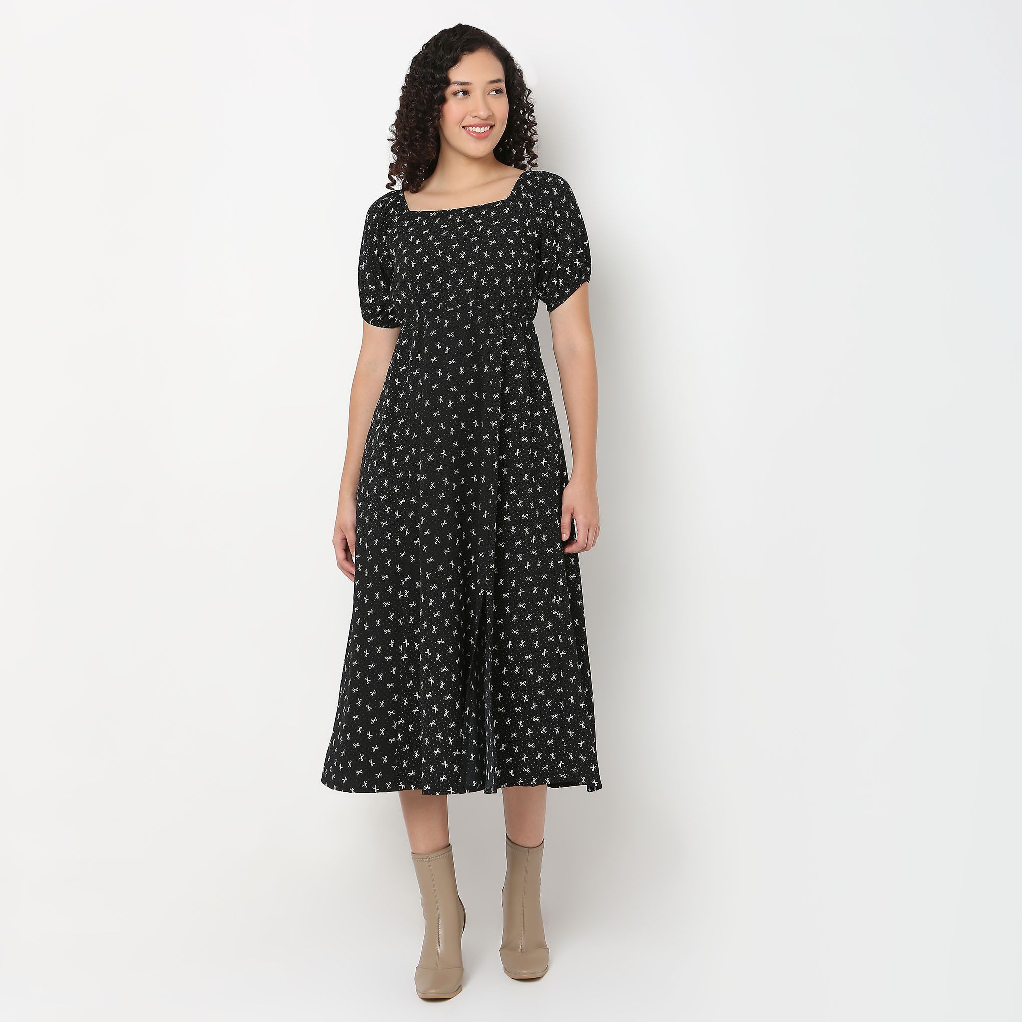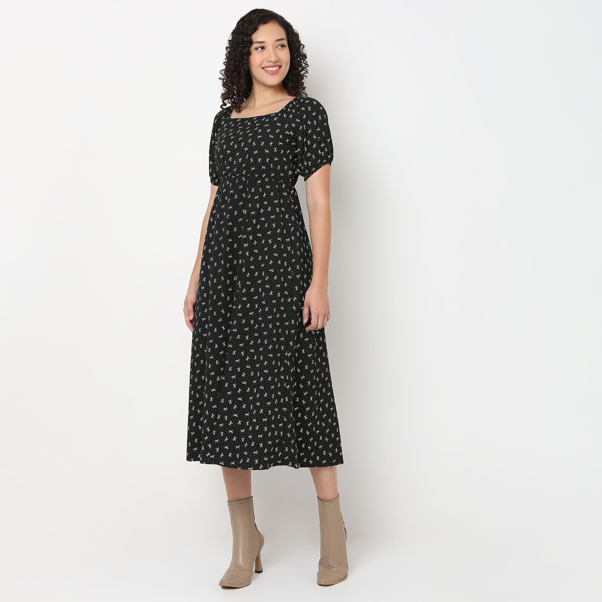 Bow Print Flared Betty Dress
