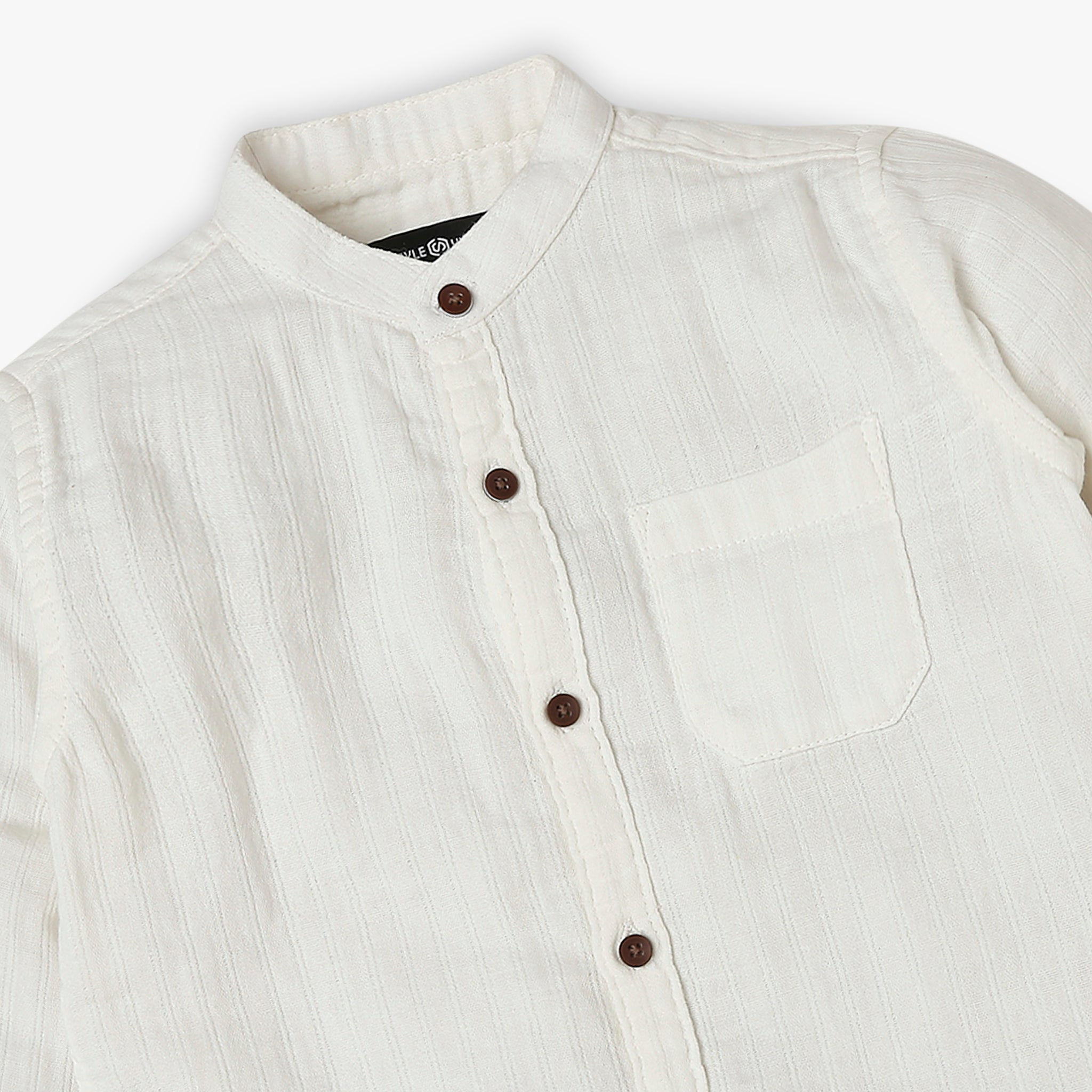 These solid pattern shirt has band collar and full sleeve. Made from cotton, your kid's feel comfortable wearing the product.