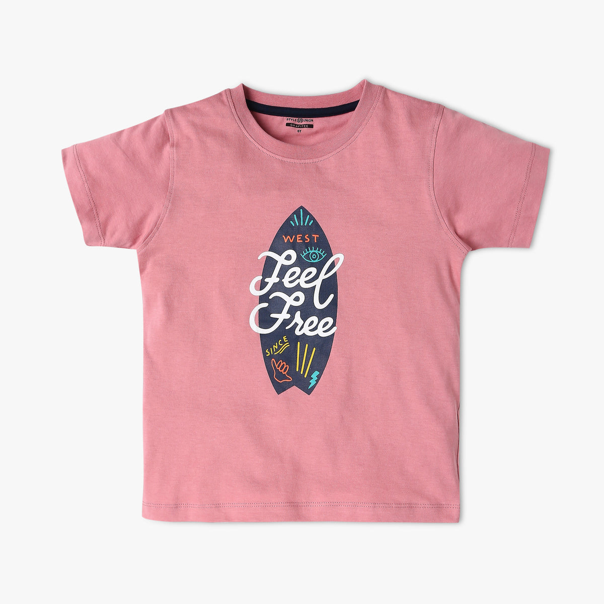 This t-shirt has a crew neck and half sleeve. Made from cotton, your kid's feel comfortable wearing a product.