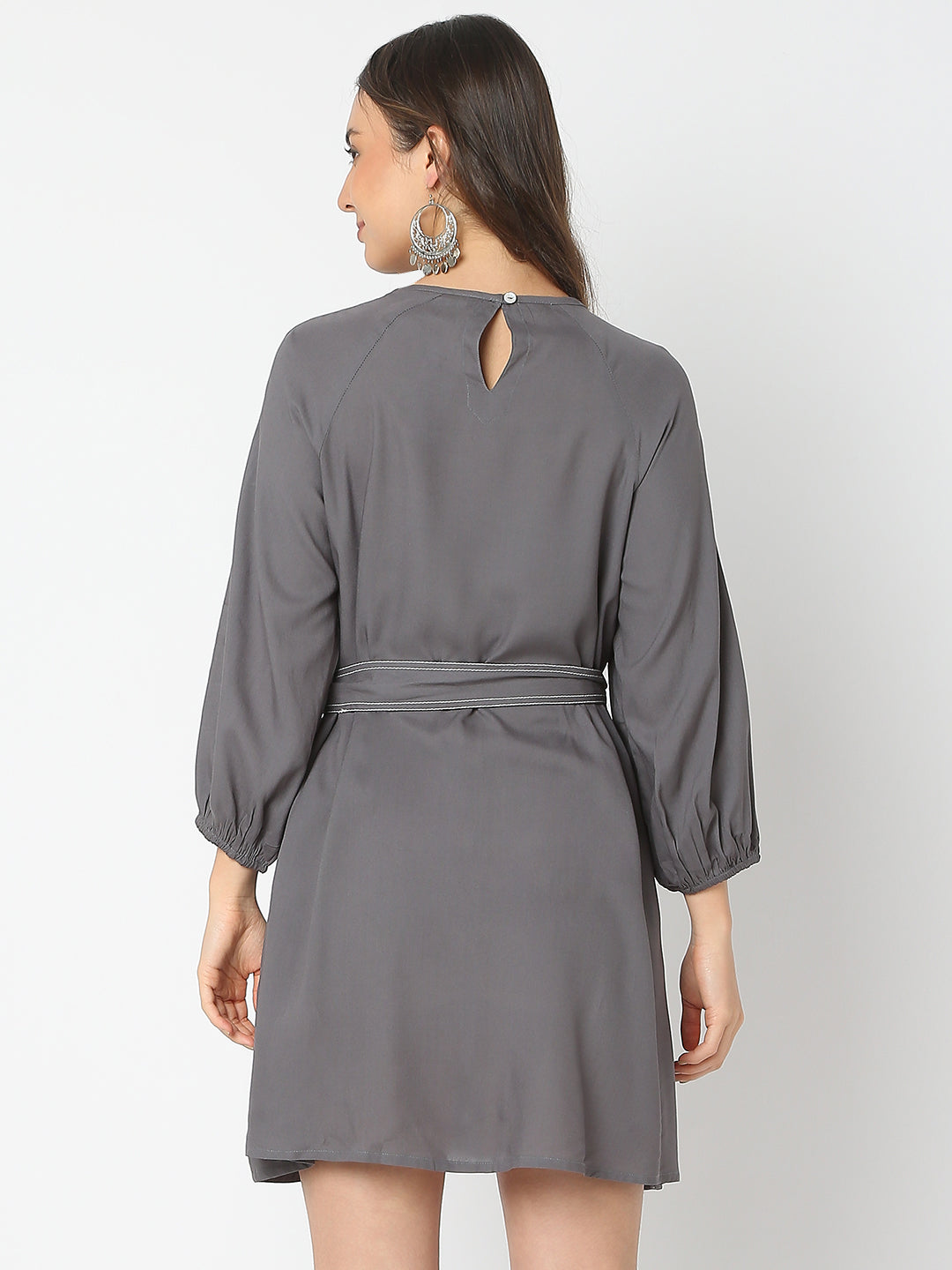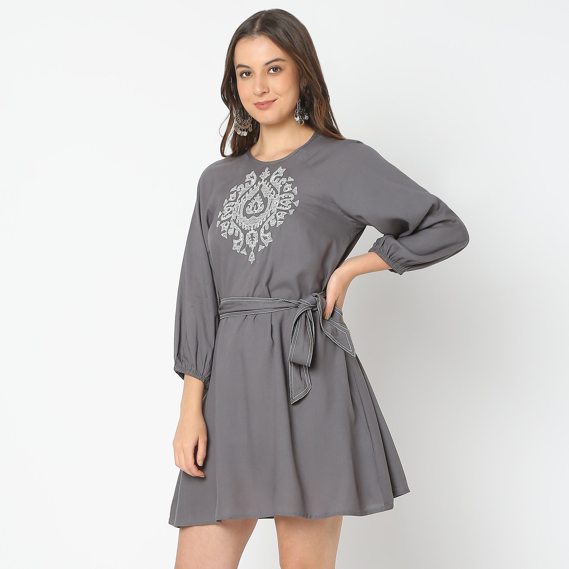 This embroidered pattern Dress has a round neck and three-fourth sleeve. Made from rayon, it is soft and comfortable to wear.