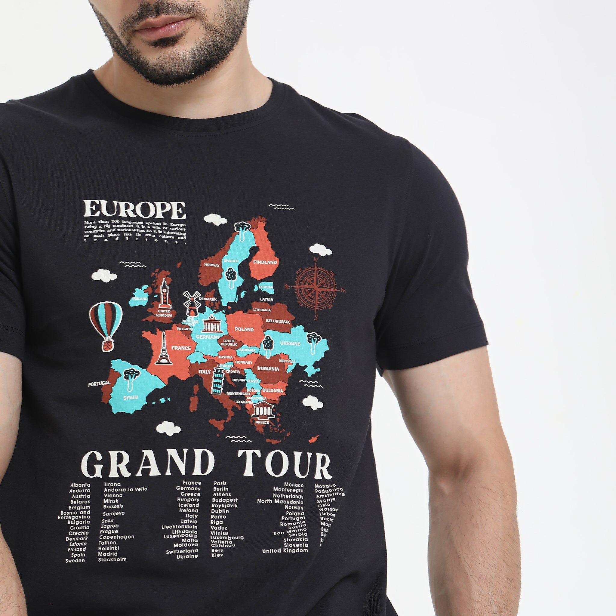 This graphic pattern t-shirt has a crew neck and half sleeve. Made from cotton, it is soft and comfortable to wear.