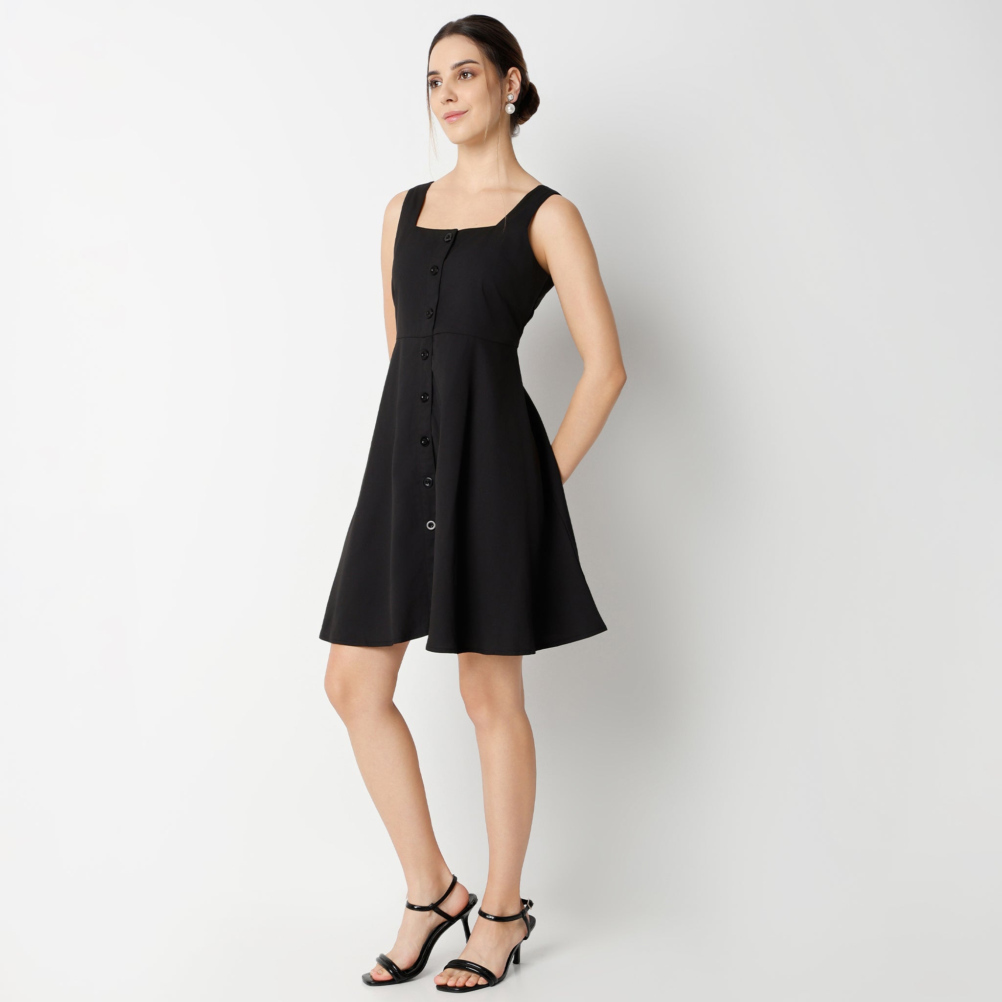 Flare Fit Knee Length Square Neck Sleeveless Dress