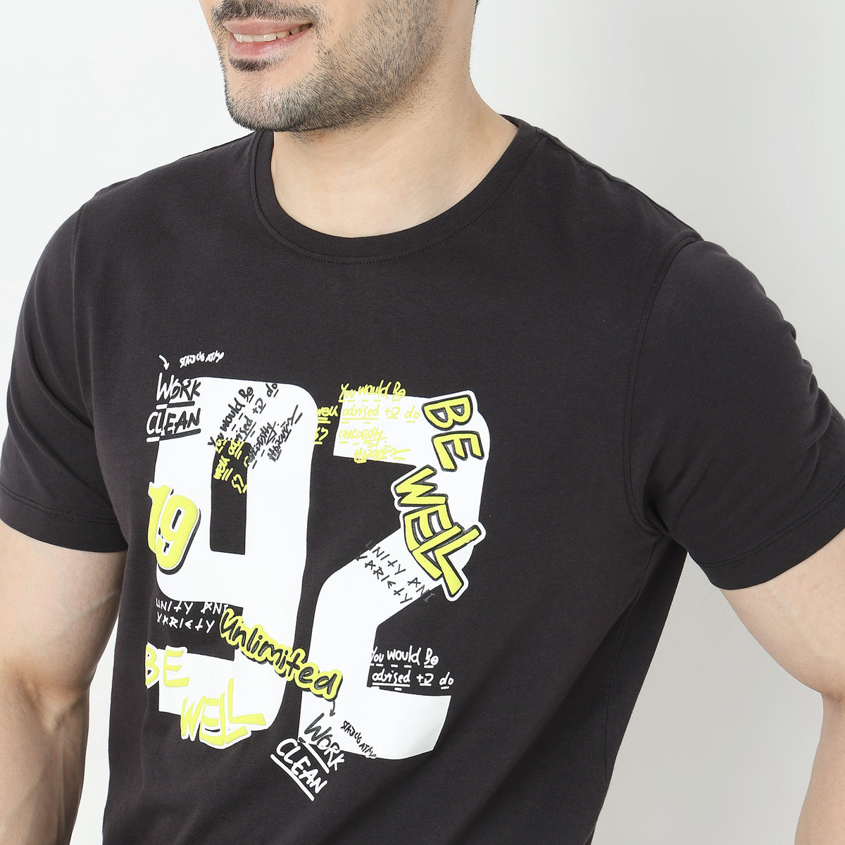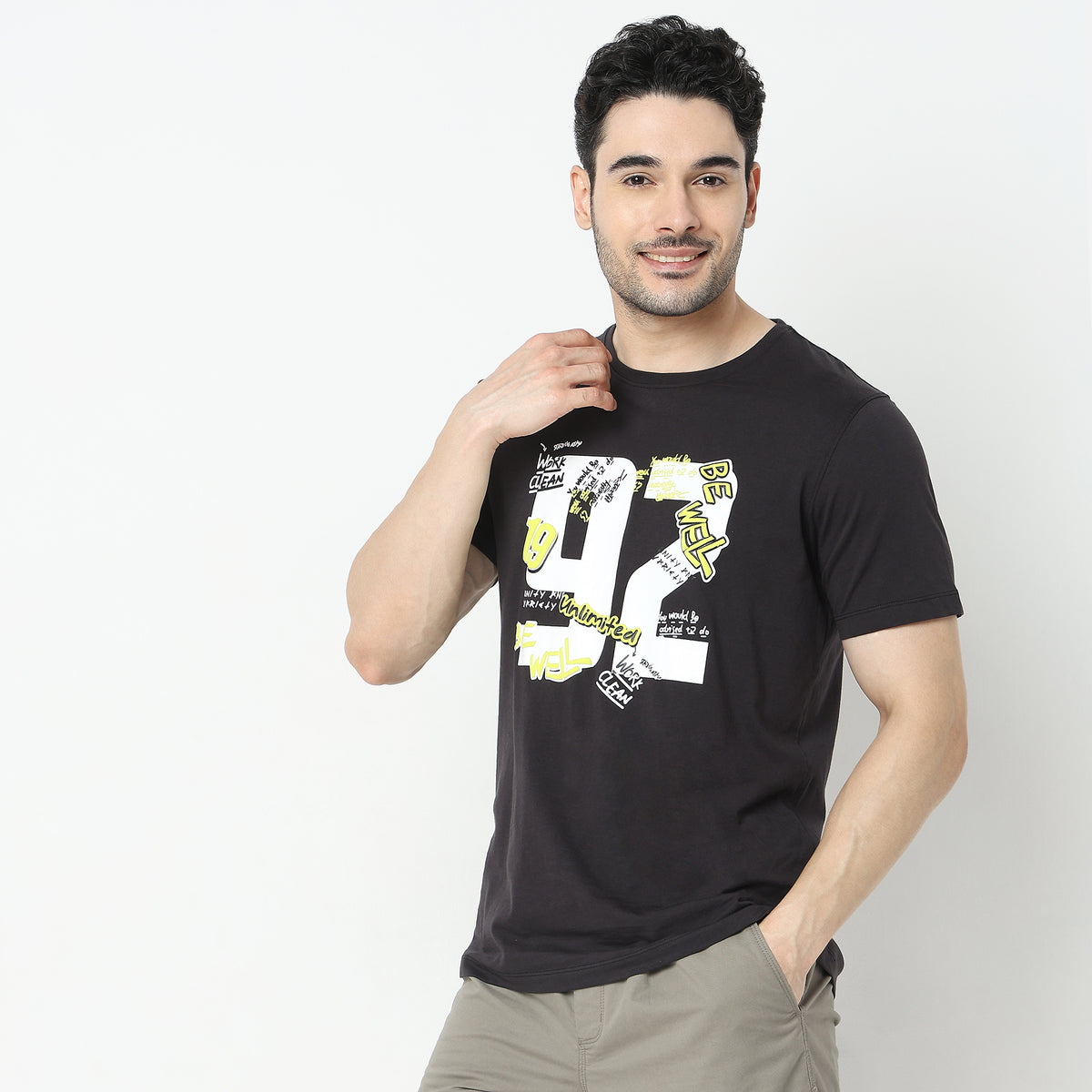 This graphic pattern t-shirt has a crew neck and half sleeve. Made from cotton, it is soft and comfortable to wear.