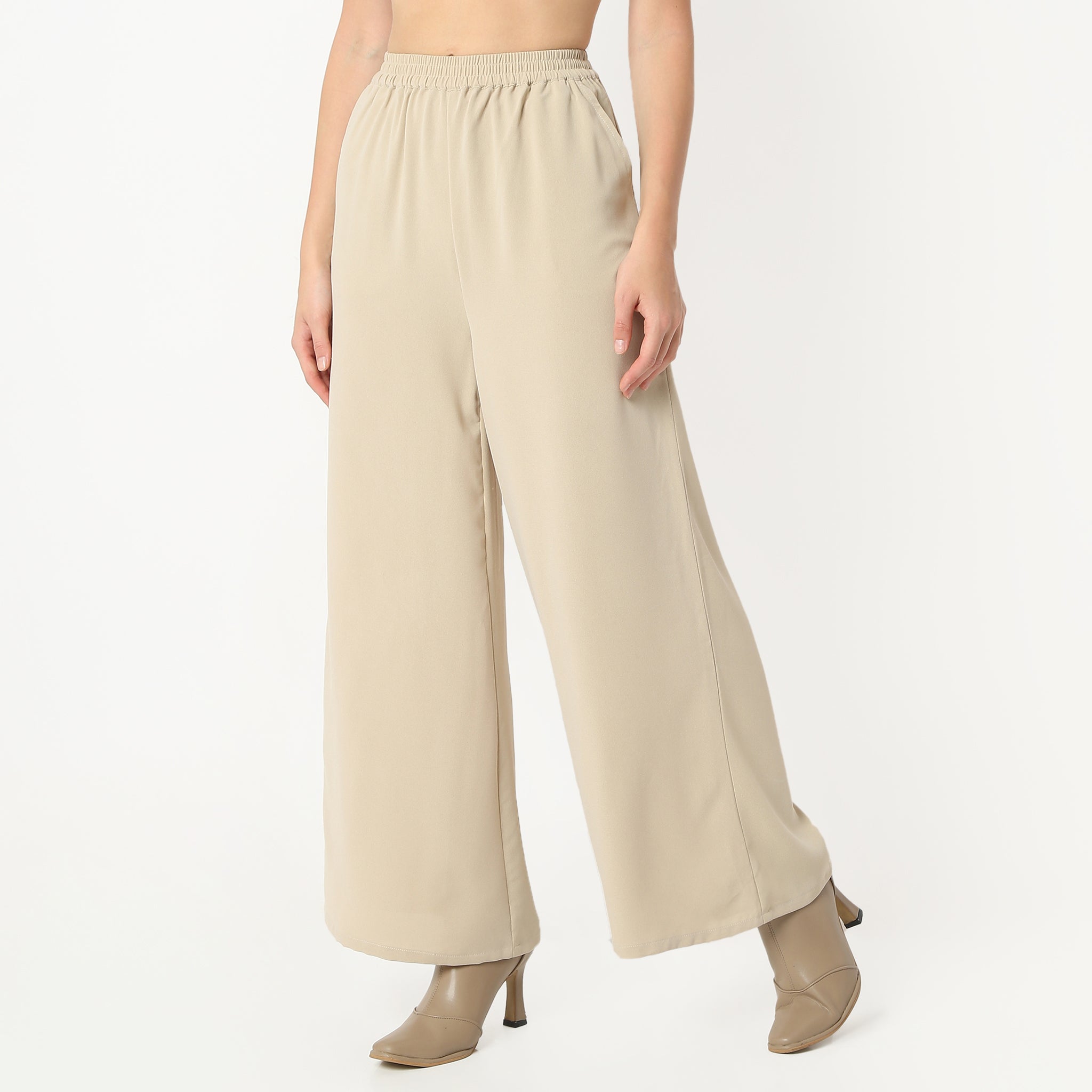 Pair these palazzos with a chic blouse for a day at the office or a casual tee for a relaxed weekend look. Their regular fit ensures a comfortable, relaxed wear, making them a must-have addition to your wardrobe.