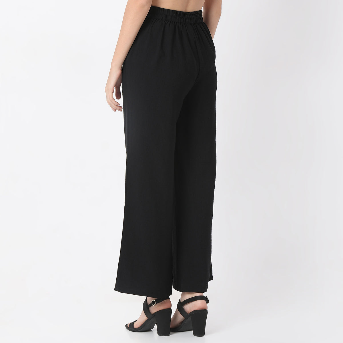 Solid Ankle Length Mid Rise Palazzos