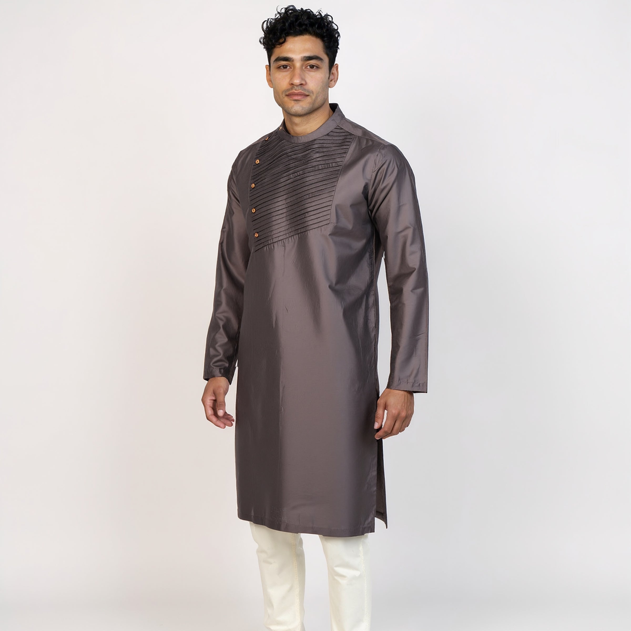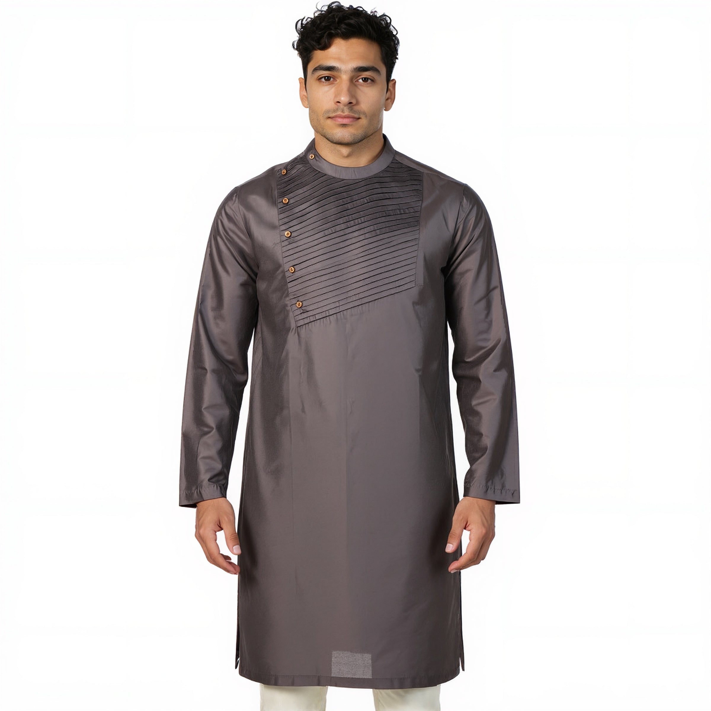 Experience the perfect blend of comfort and style with our Pintuck Long Kurta. Crafted from a luxurious viscose polyester blend, this kurta offers a soft touch and a sophisticated look. The pintuck detailing adds a touch of elegance, making it a versatile choice for both casual and formal occasions. The knee-length design and mandarin collar provide a modern twist to traditional attire, ensuring you stand out in any setting.