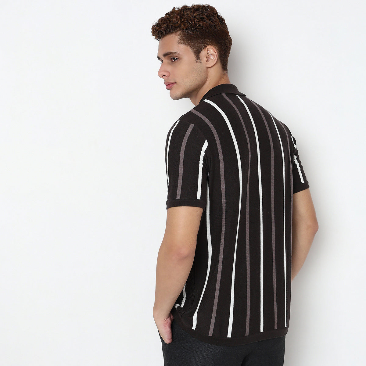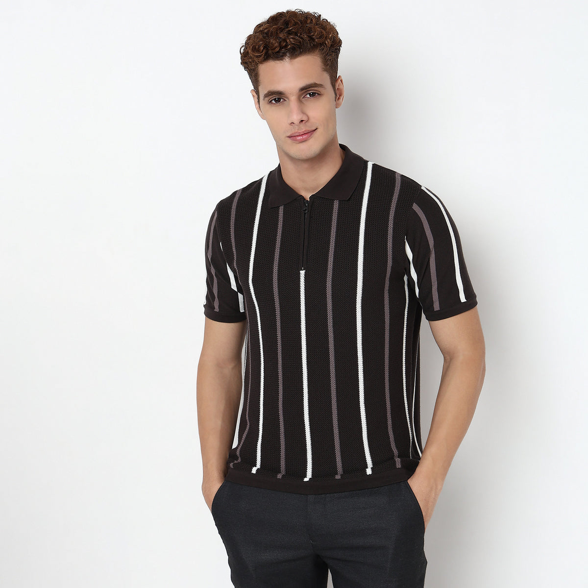 Experience the perfect blend of comfort and style with our Knitted Hand Knit Jersey Half Sleeve Polo T-Shirt. Crafted with a soft cotton-polyester blend, this t-shirt offers a cozy feel and breathability, making it ideal for everyday wear. The classic striped pattern and polo neck add a touch of sophistication, ensuring you look sharp whether at a casual outing or a relaxed day at home.