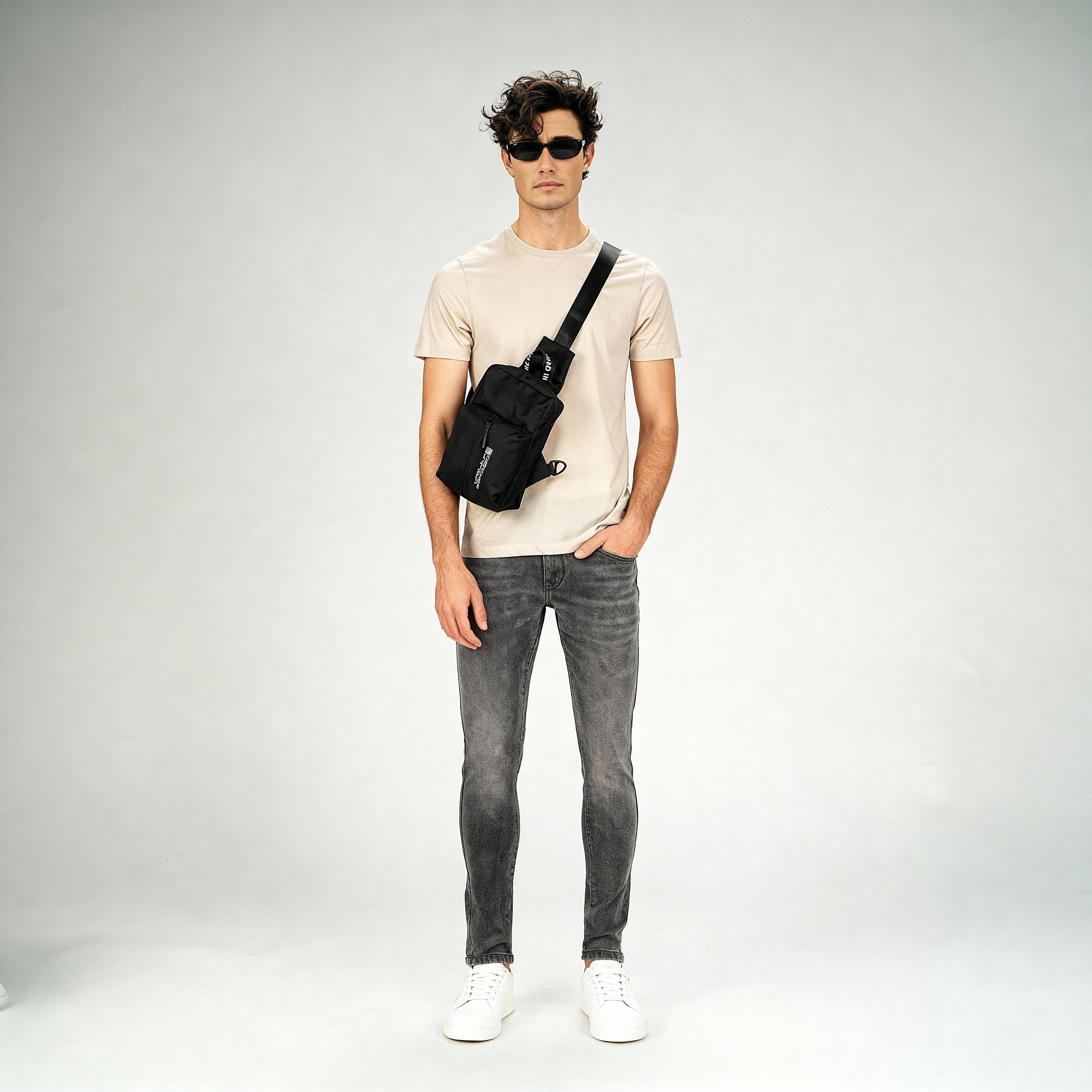 Compact mens cross body bag with a sleek, stylish design, made from durable material. Features an adjustable strap for versatile wear, with a spacious interior to hold essentials. Perfect for casual outings.