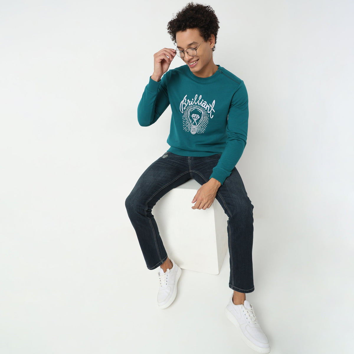 These regular fit sweatshirt has regular length. Made from cotton polyester, it is soft and comfortable to wear.
