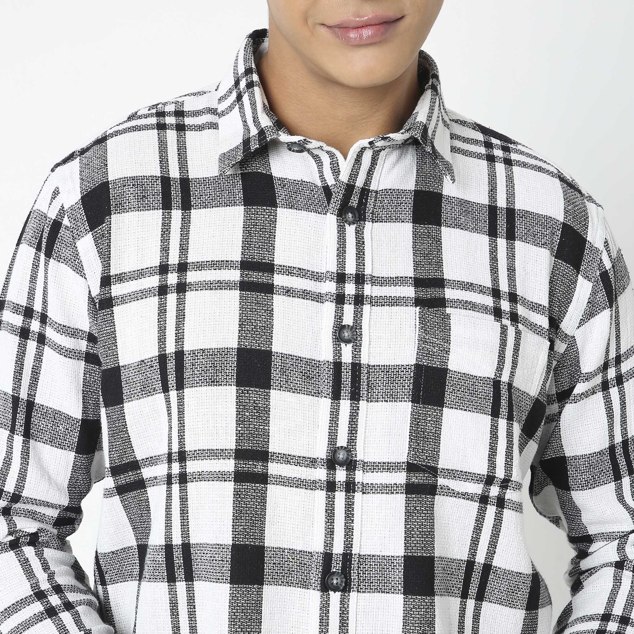 This checkered pattern shirt has a shirt collar and full sleeve. Made from cotton, it is soft and comfortable to wear.