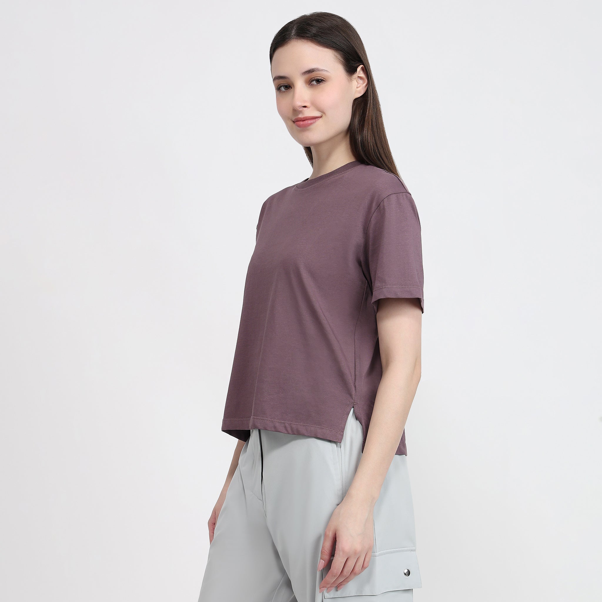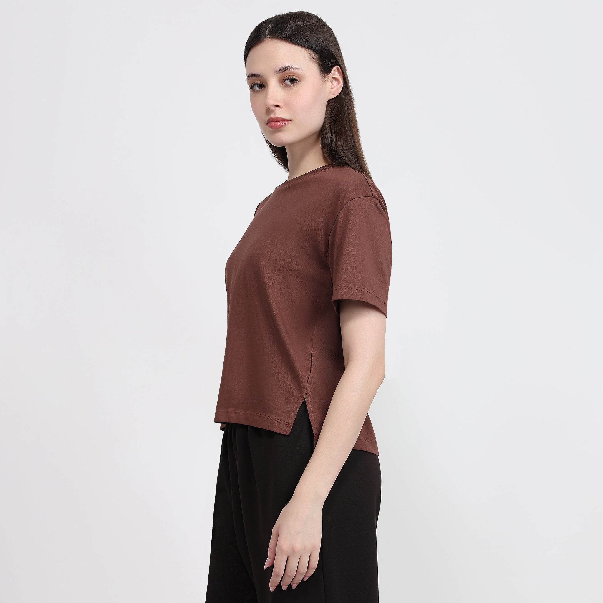 Discover the perfect blend of comfort and style with our Relaxed Fit Solid T-Shirt. Crafted from a soft cotton-polyester blend, this versatile piece is designed for women who value both fashion and ease.