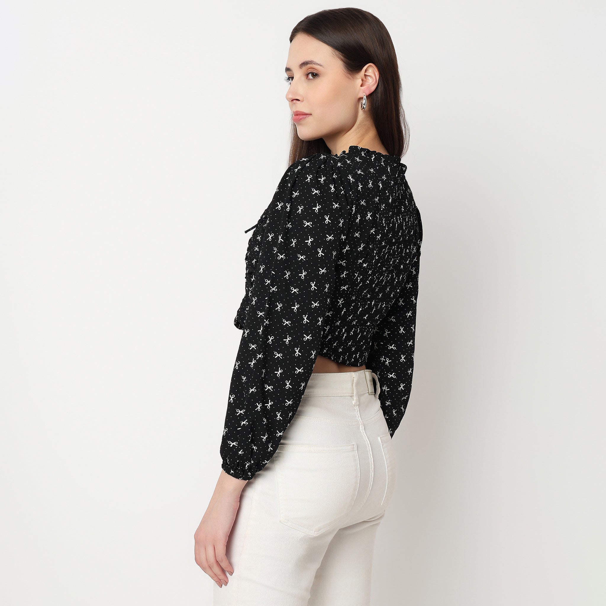 Experience the perfect blend of style and comfort with our Bow Print Tie-Up Neck Crop Top. This top is designed to offer a modern, stylish, and tailored fit that enhances your silhouette while ensuring all-day comfort. The soft, stretchy fabric moves with you, making it ideal for both casual outings and special occasions.