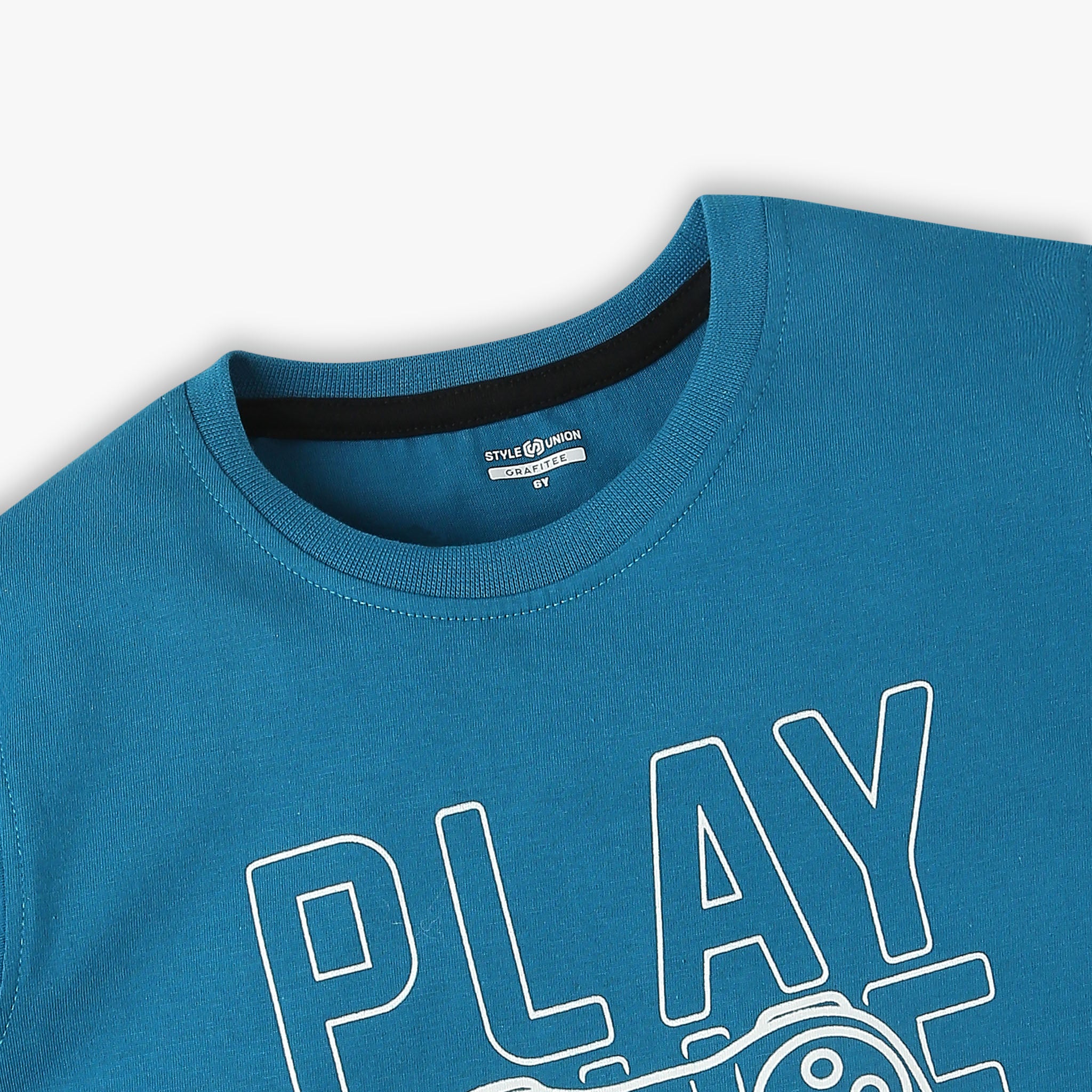 These graphic pattern t-shirt has crew neck and half sleeve. Made from cotton, your kid's feel comfortable wearing the product.