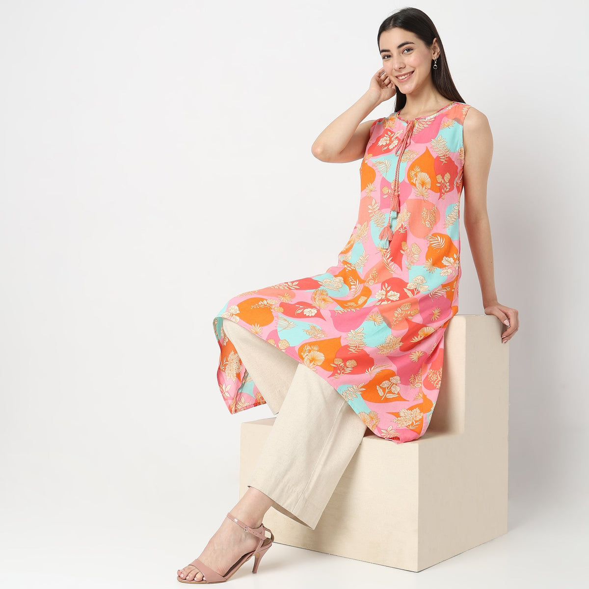 These regular fit kurta has below knee length. Made from viscose, it is soft and comfortable to wear.