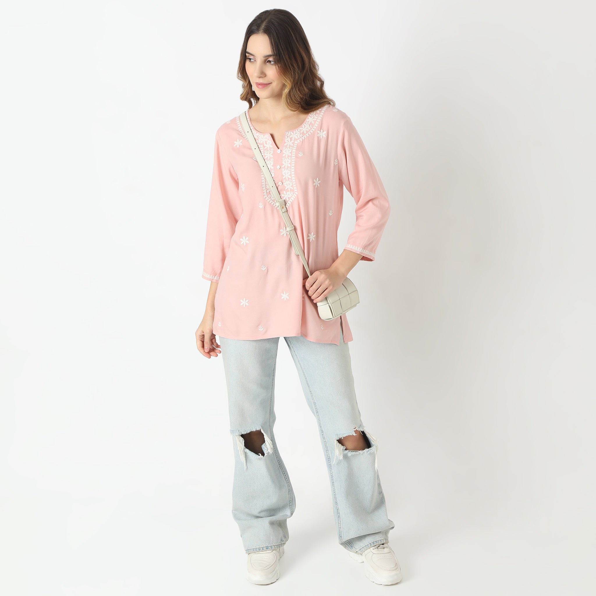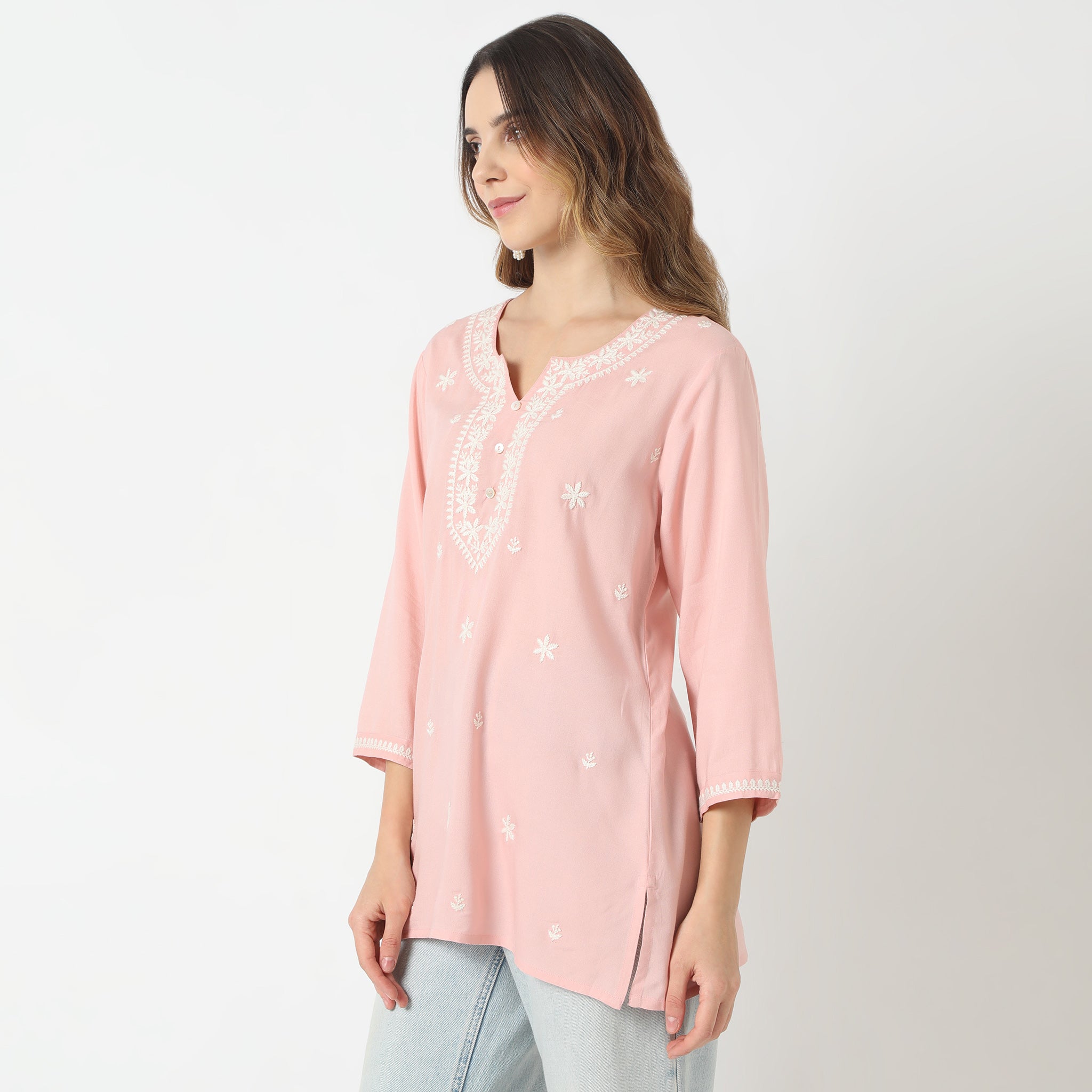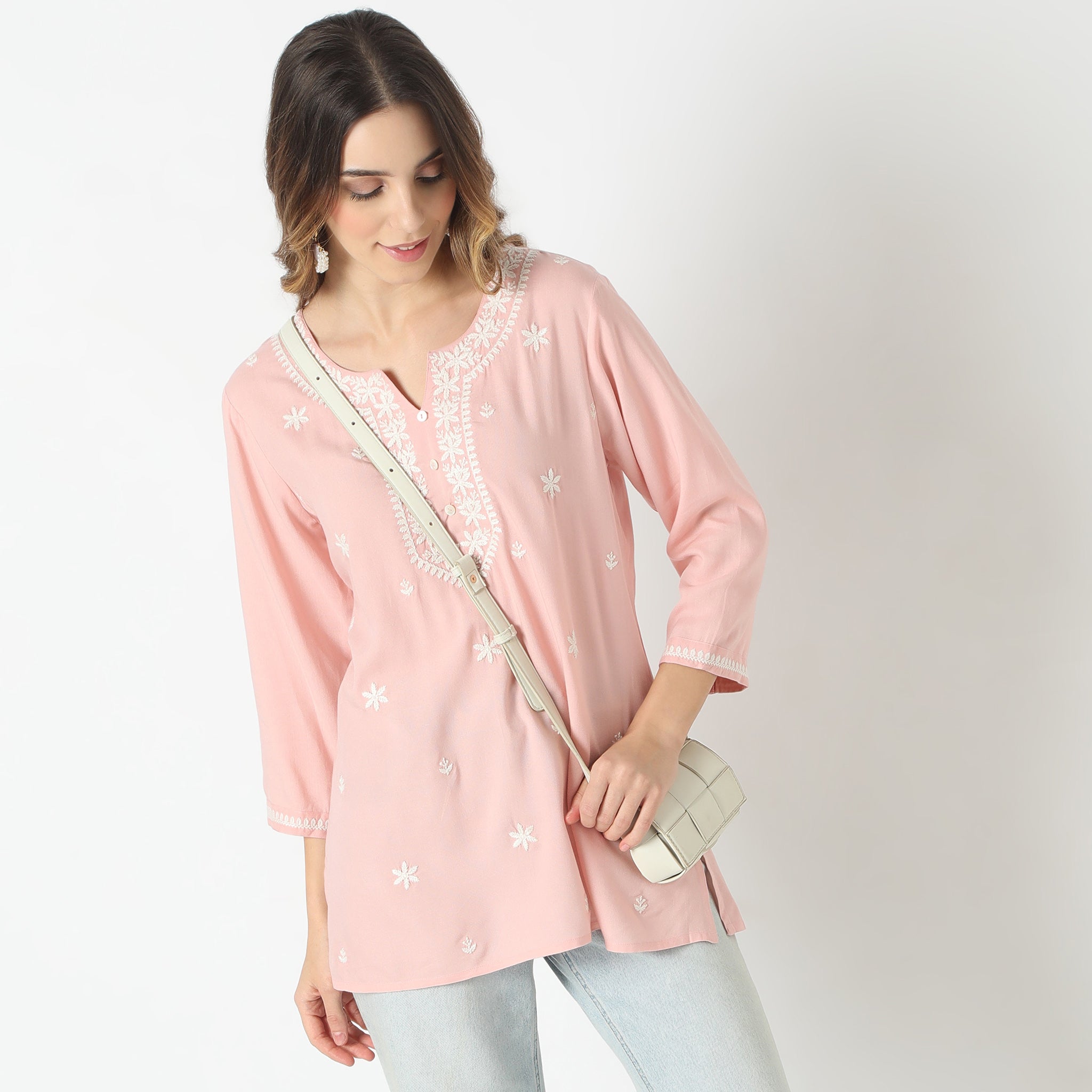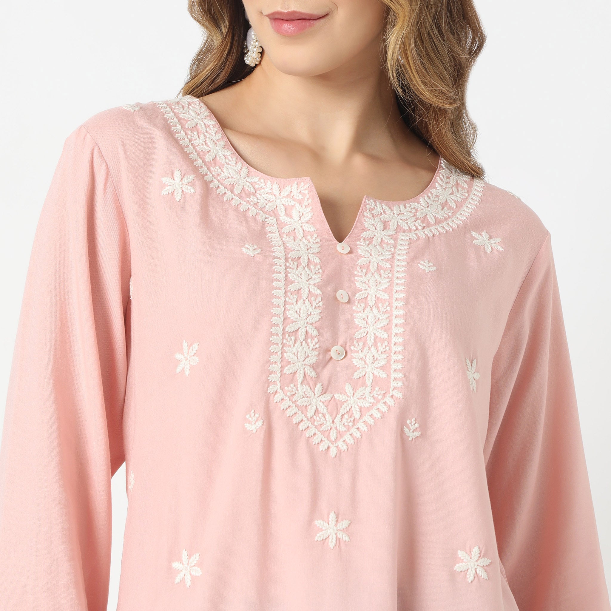Experience the perfect blend of tradition and modernity with our Straight Fit Embroidered Chikankari Kurta. Crafted from 100% Rayon, this kurta offers a luxurious feel against the skin, ensuring all-day comfort and breathability. The intricate embroidery adds a touch of elegance, making it a versatile piece for both casual outings and festive occasions.