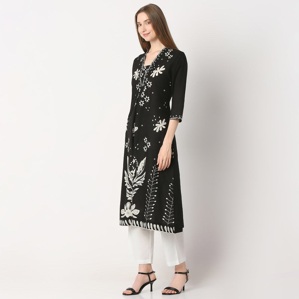 Experience the perfect blend of comfort and style with our Flare Fit Printed Below Knee V-Neck A-Line Kurta. Crafted from 100% cotton, this kurta offers breathability and softness, ensuring you stay comfortable all day long. The vibrant printed pattern adds a touch of elegance, making it a versatile choice for any occasion.