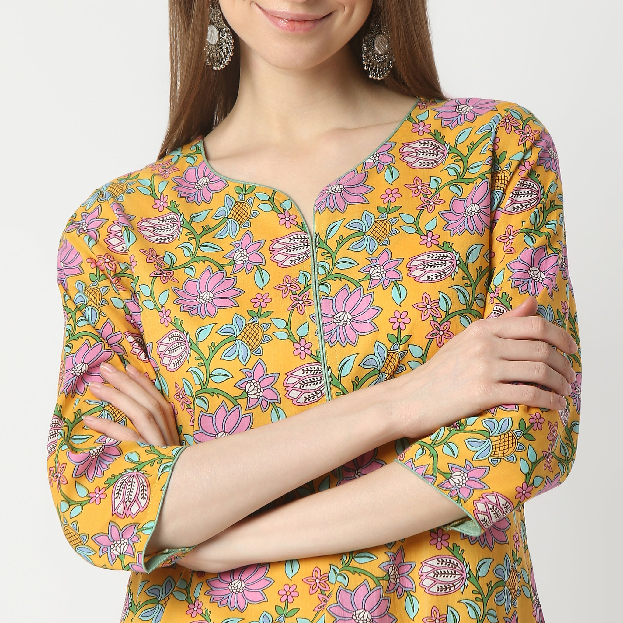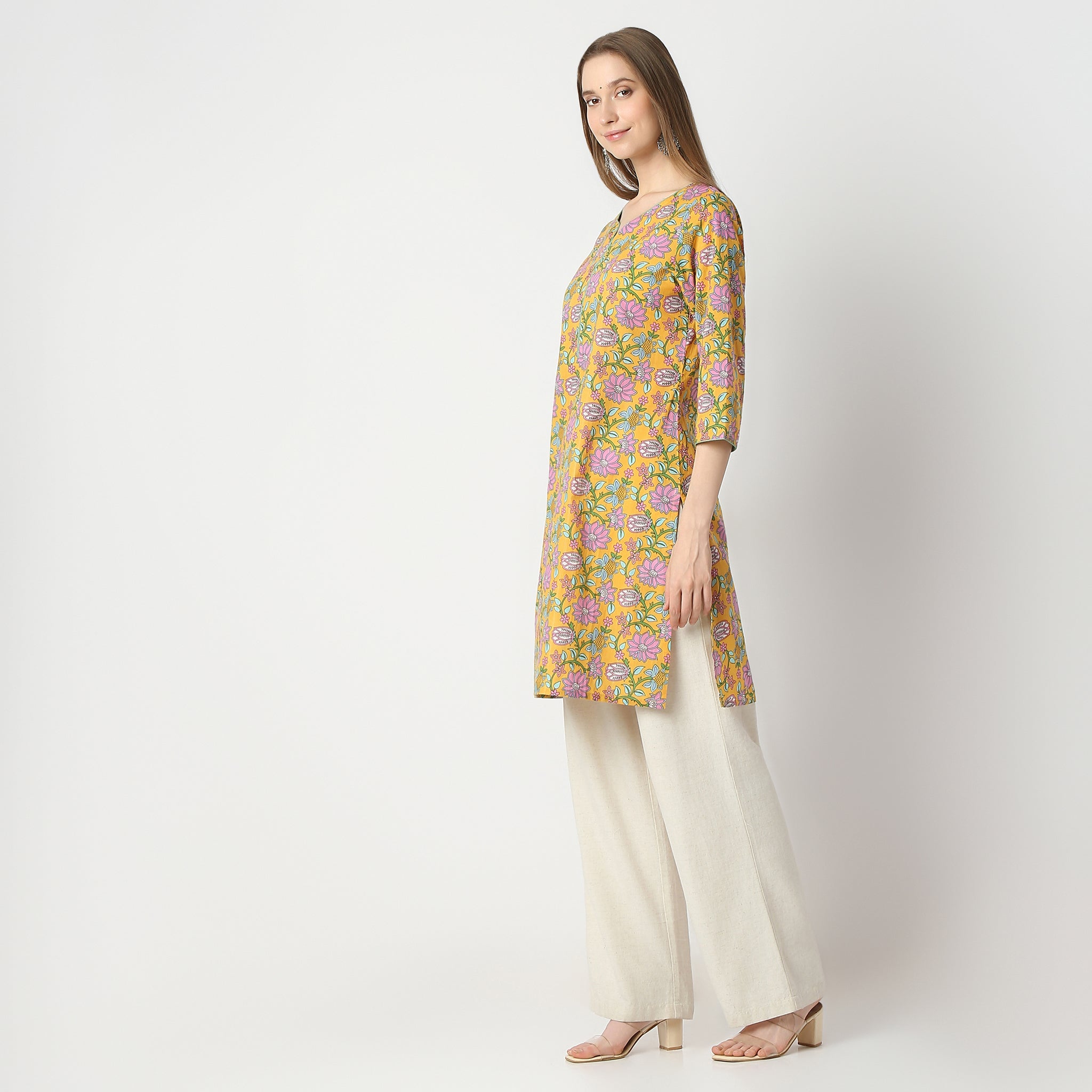 Experience the perfect blend of comfort and style with our Straight Fit Floral Knee Length Kurta. Crafted from 100% cotton, this kurta offers a soft touch against your skin, ensuring all-day comfort. The woven floral pattern adds a touch of elegance, making it a versatile piece for any occasion. Whether you're heading to a casual brunch or a day at the office, this kurta adapts effortlessly to your lifestyle.