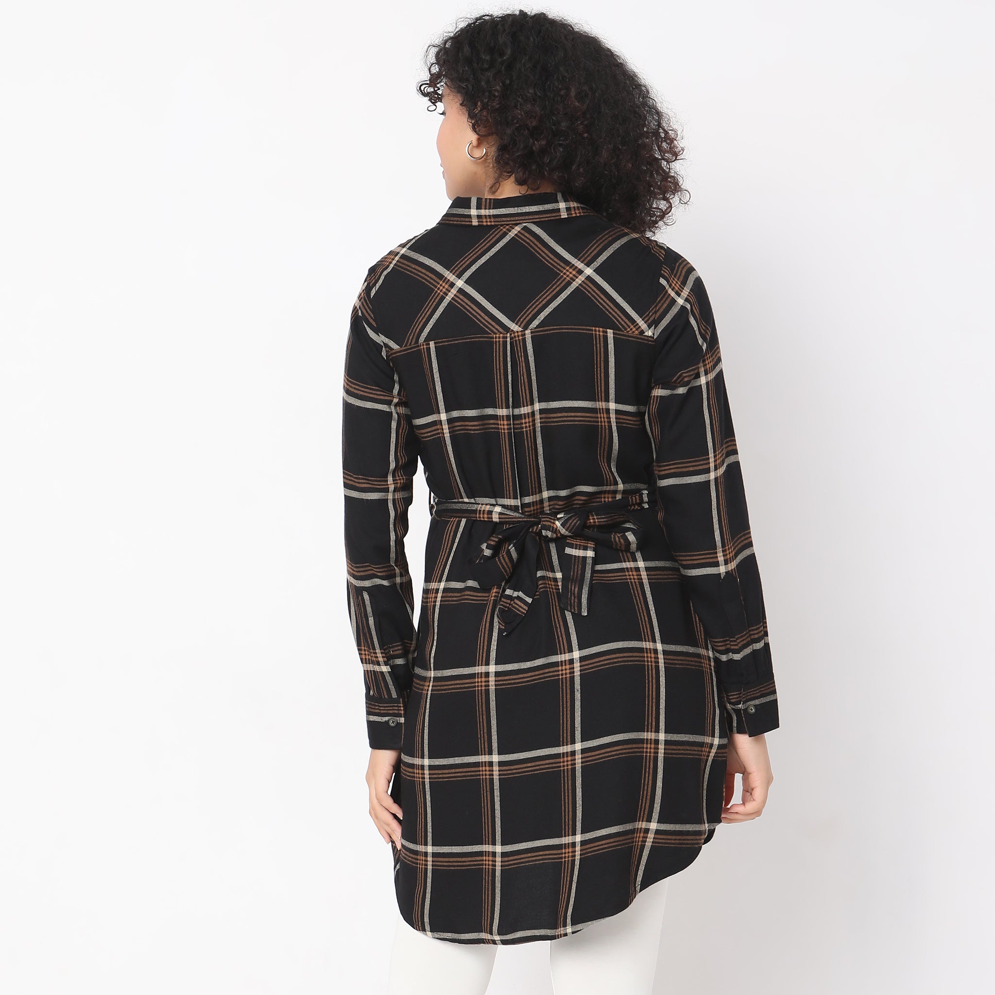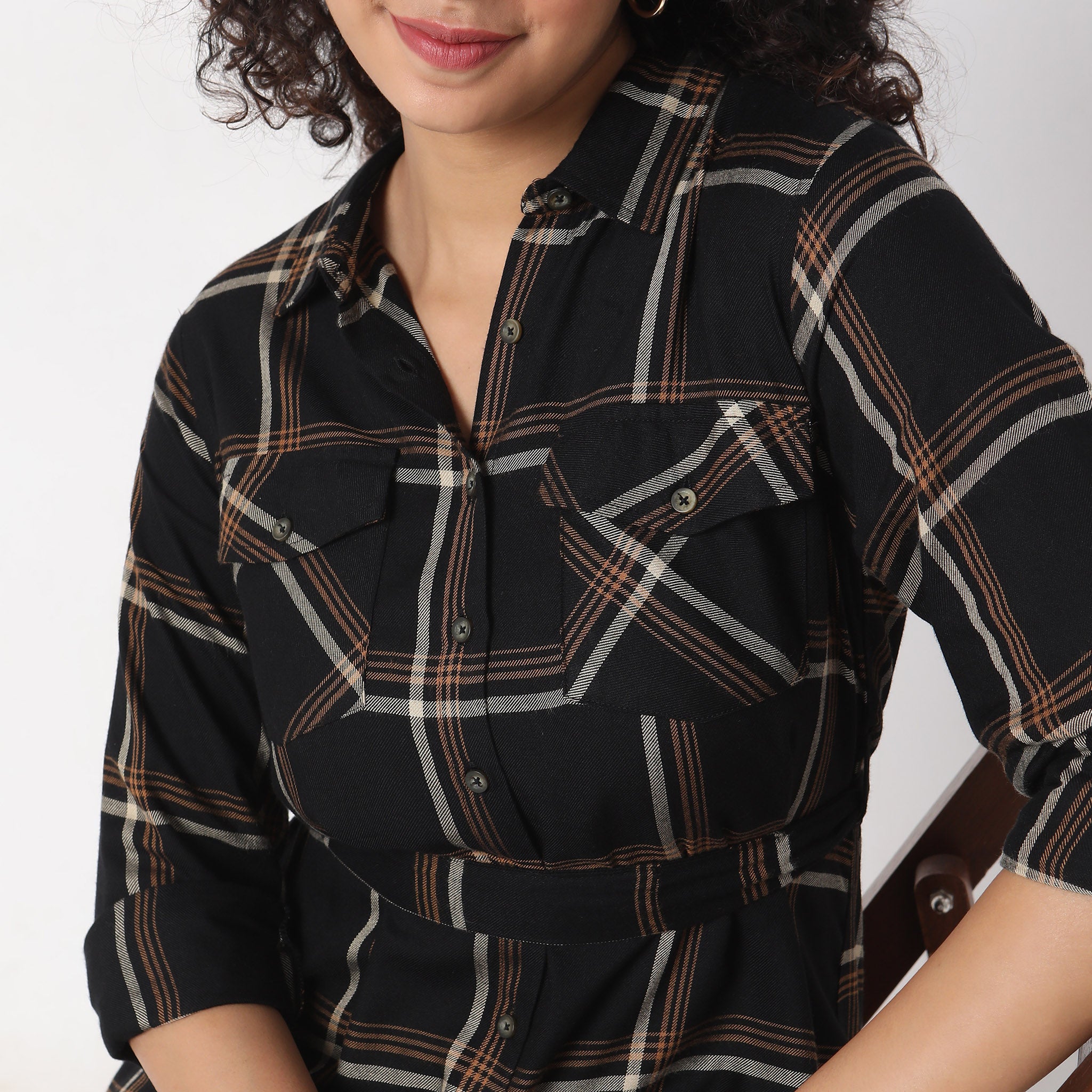 This checkered pattern top has a shirt collar and full sleeve. Made from viscose, it is soft and comfortable to wear.