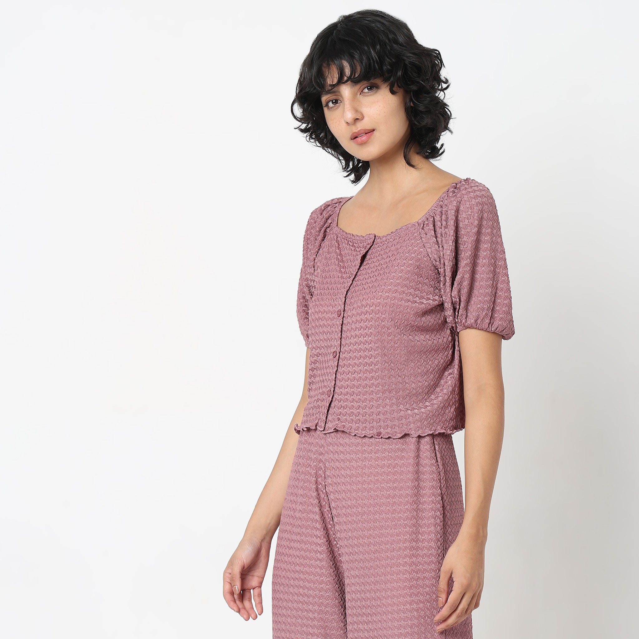 This solid pattern shirt has a square neck and short sleeve. Made from polyester elastane, it is soft and comfortable to wear.