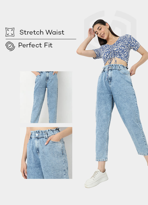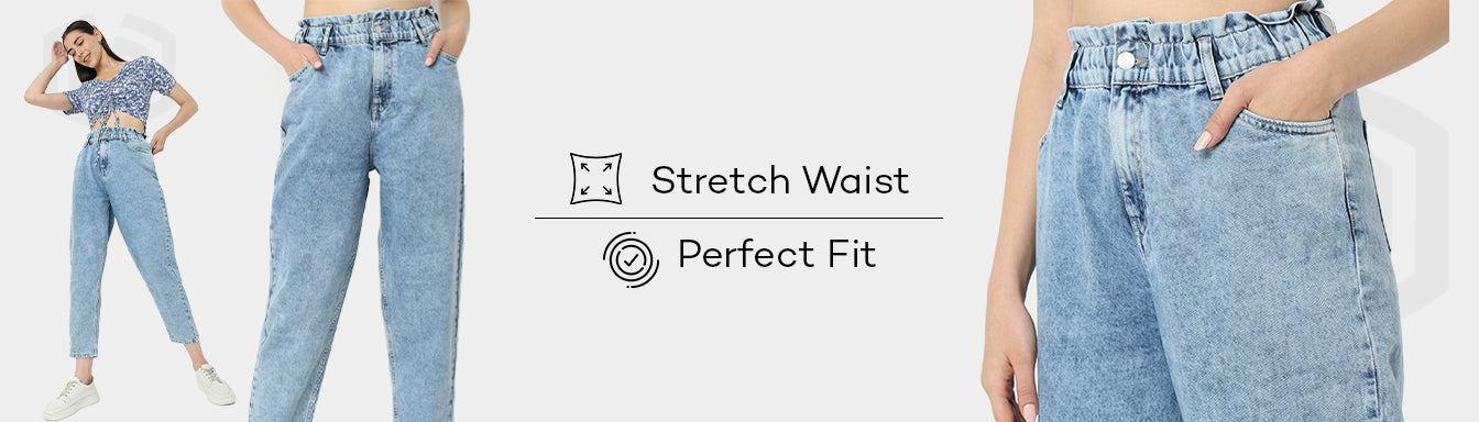 These slouch fit jeans has Cropped length, high rise waist. Made from cotton, it is soft and comfortable to wear. A modern, laid-back silhouette that offers freedom of movement and a touch of effortless style, made in 100% breathable cotton. Designed for all-day ease, the stretchable waistband ensures a perfect fit and effortless wear.