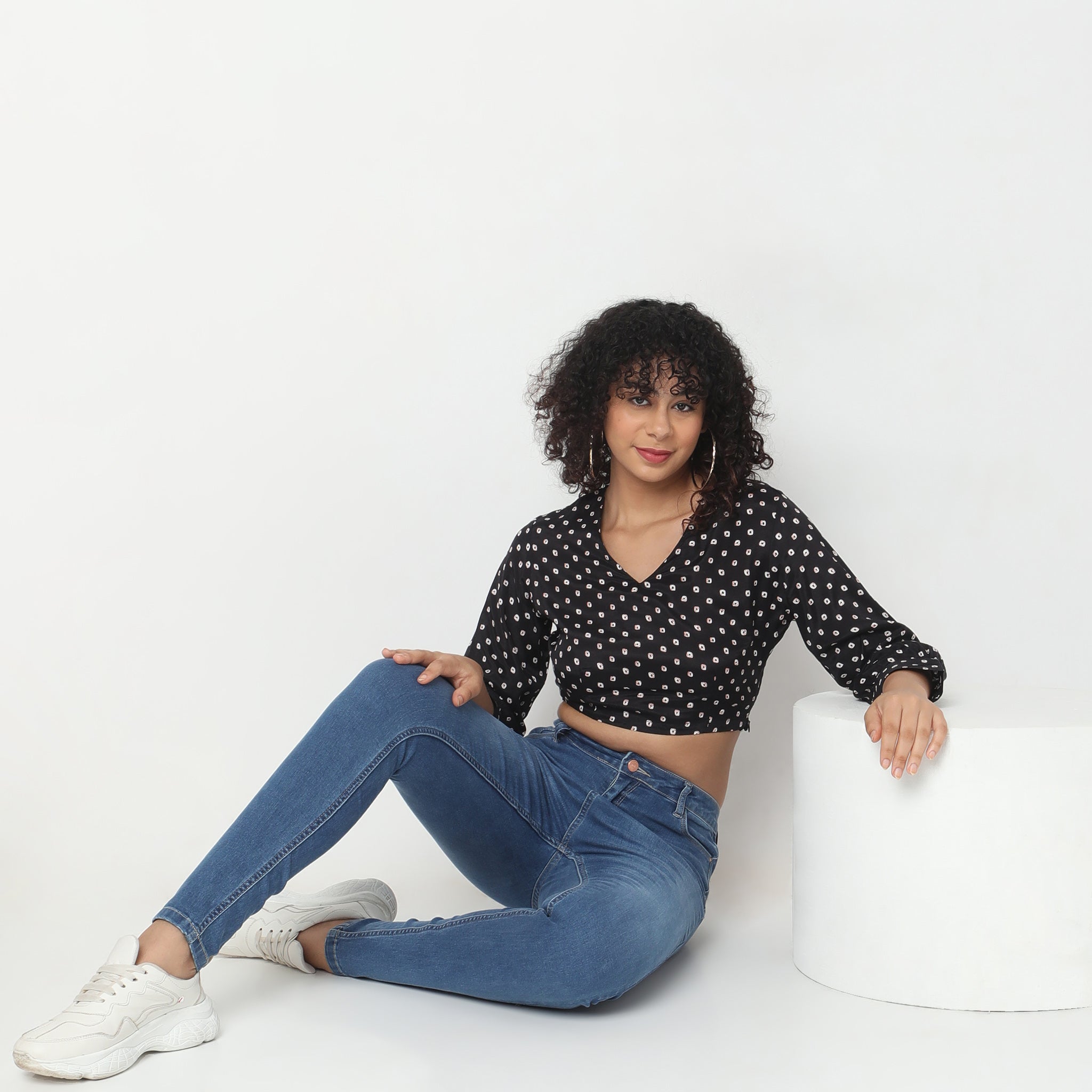 This printed pattern top has a v neck and three-fourth sleeves. Made from viscose, it is soft and comfortable to wear.