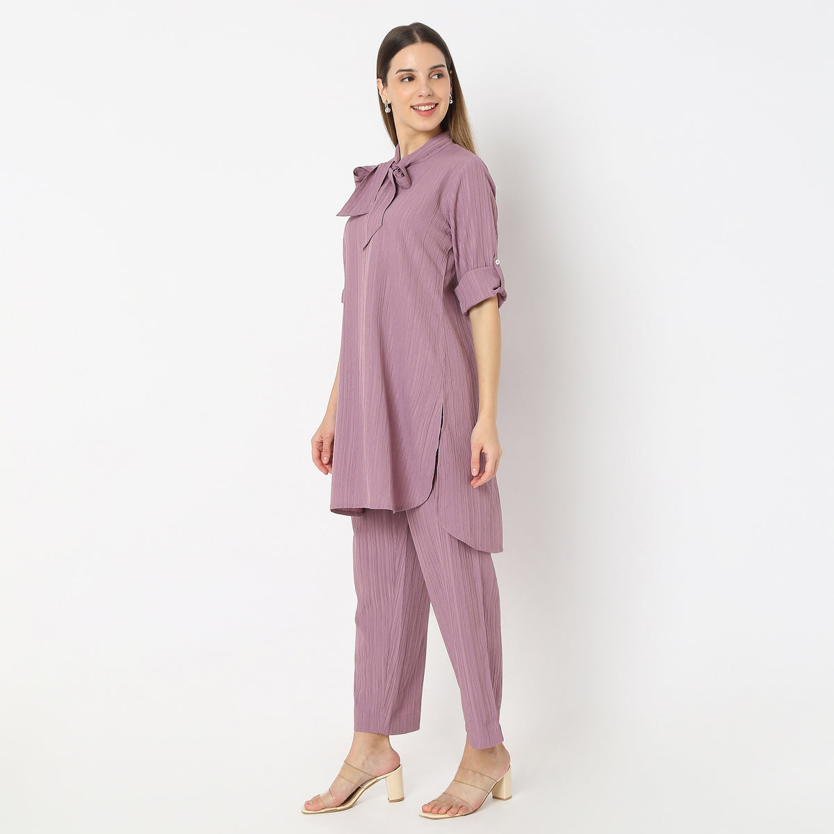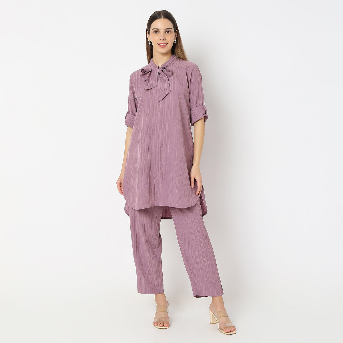 Straight Fit Tie-Up Coordinated Code Kurta With Pant Set