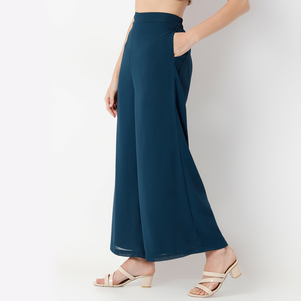 Elevate your everyday style with these Solid High-Rise Flared Palazzos, designed for breezy comfort and versatile elegance. Perfect for casual outings, office looks, or festive pairings.