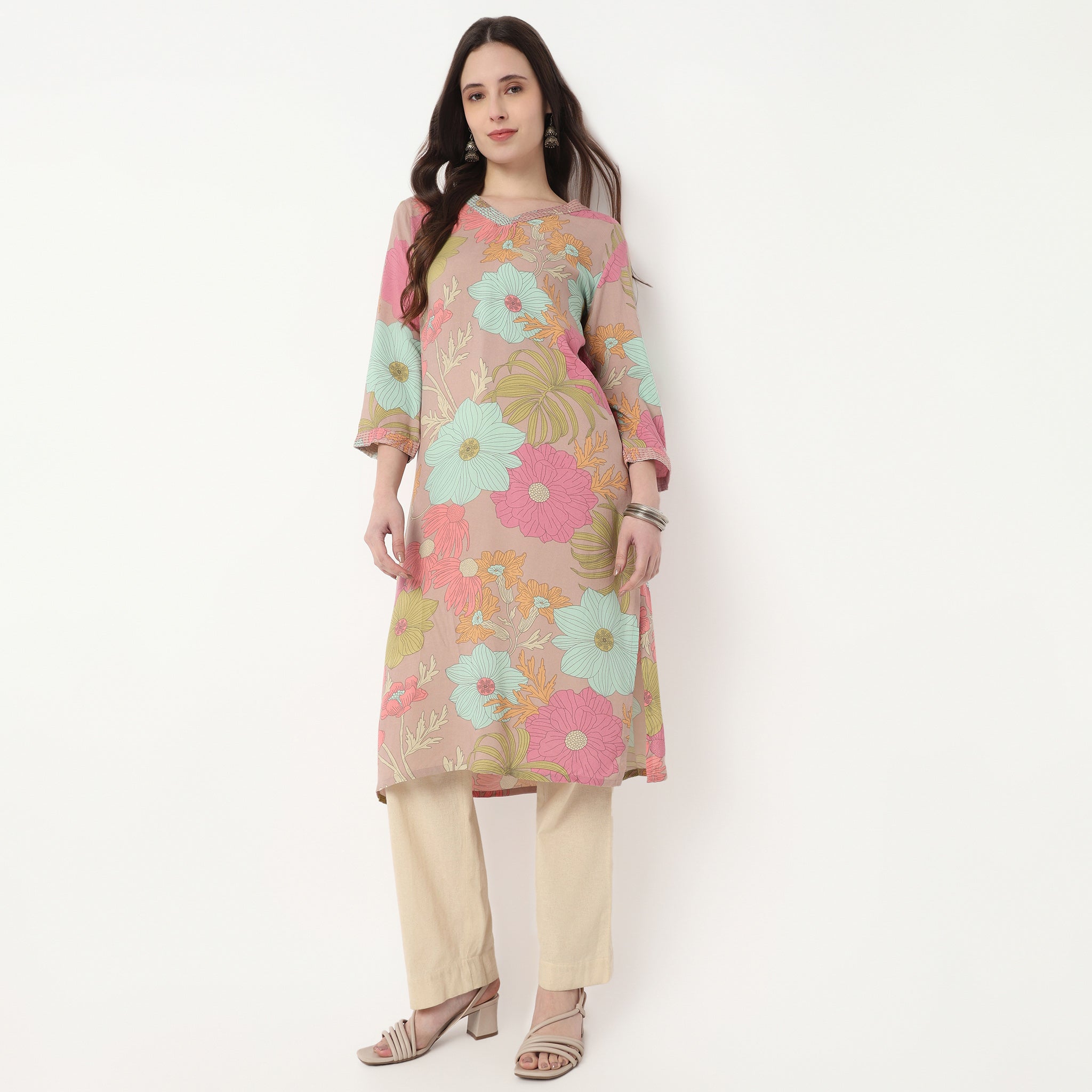 V-Neck Printed Long Kurta