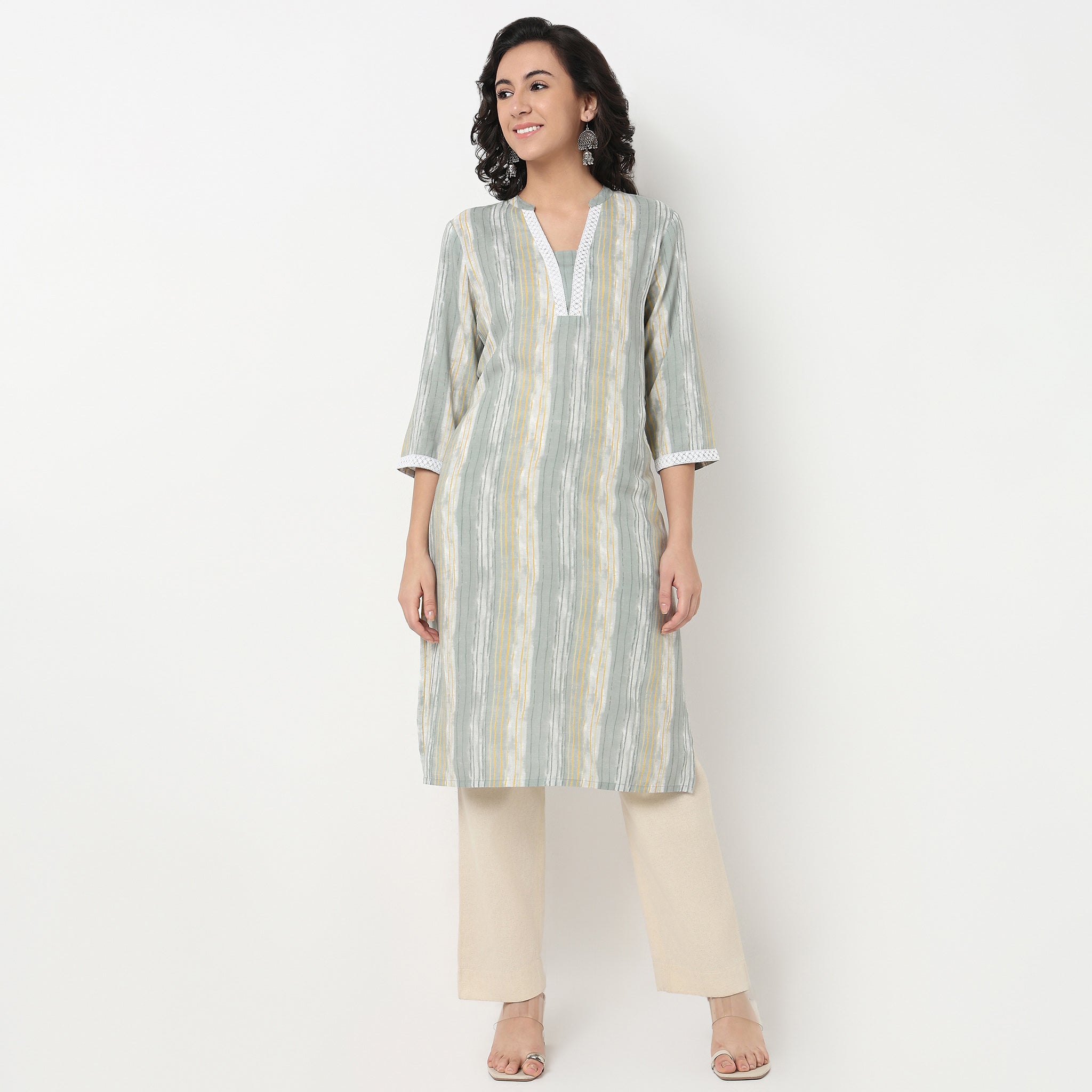 Step into elegance with our Printed V-Neck Knee Length Kurta, crafted from luxurious 100% Rayon for a soft and breathable feel. This kurta is designed to offer both comfort and style, making it a versatile addition to your wardrobe. The vibrant printed pattern adds a touch of charm, perfect for both casual outings and special occasions. The V-neck design enhances your neckline, while the three-fourth sleeves provide a balance of coverage and freedom. With a convenient pocket, this kurta is as practical as it is stylish.