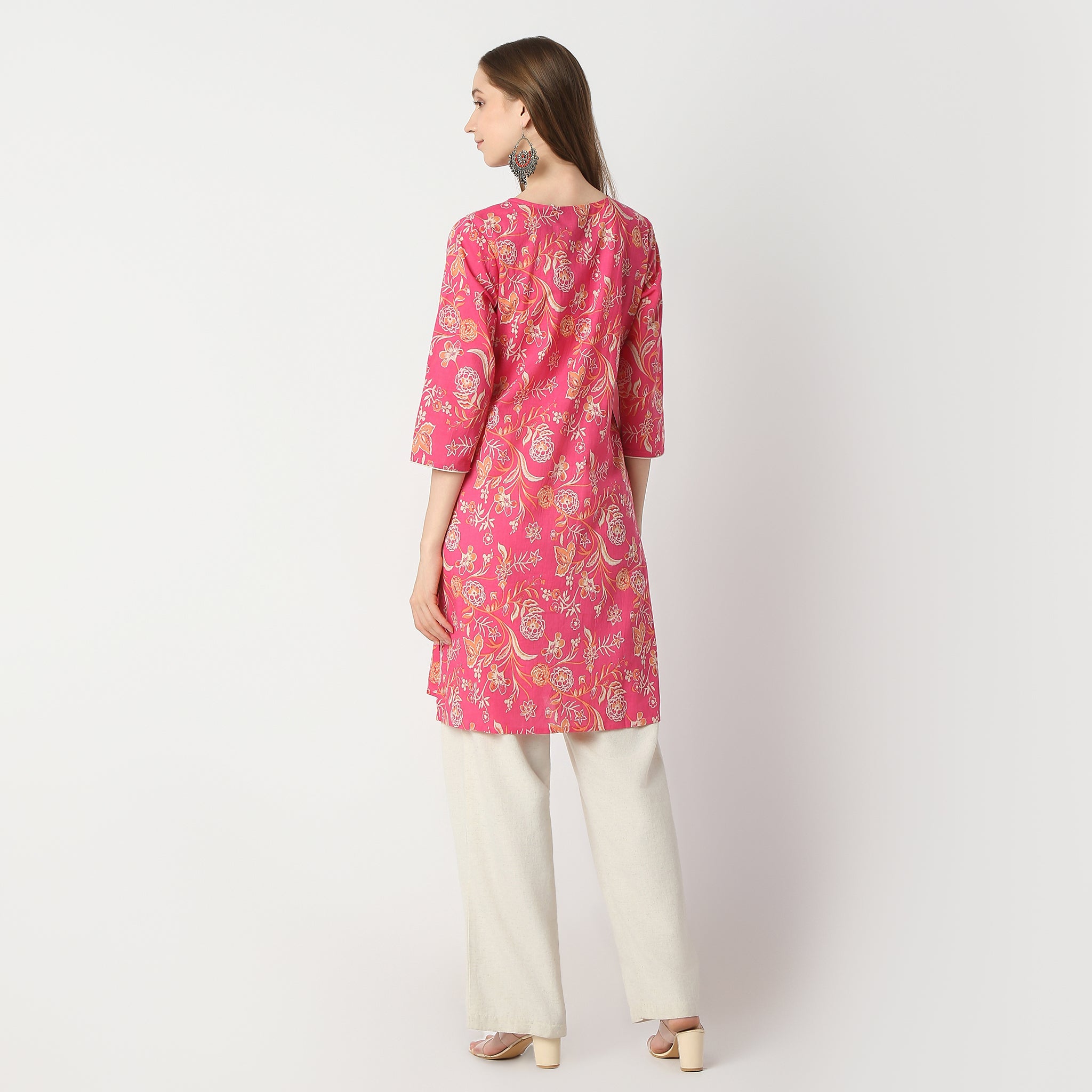 Experience the perfect blend of comfort and style with our Straight Fit Floral Knee Length Kurta. Crafted from 100% cotton, this kurta offers a breathable and soft touch against your skin, making it ideal for all-day wear. The vibrant floral pattern adds a touch of elegance and femininity, perfect for both casual outings and semi-formal gatherings.