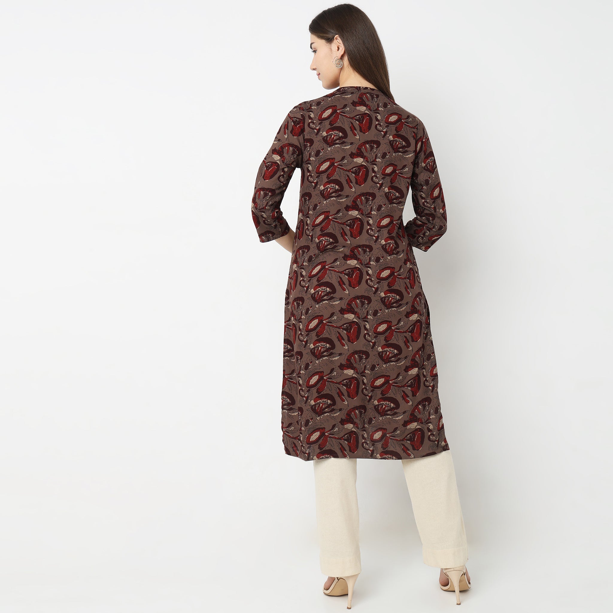 This printed pattern kurta has a band collar and three-fourth sleeve. Made from viscose, it is soft and comfortable to wear.