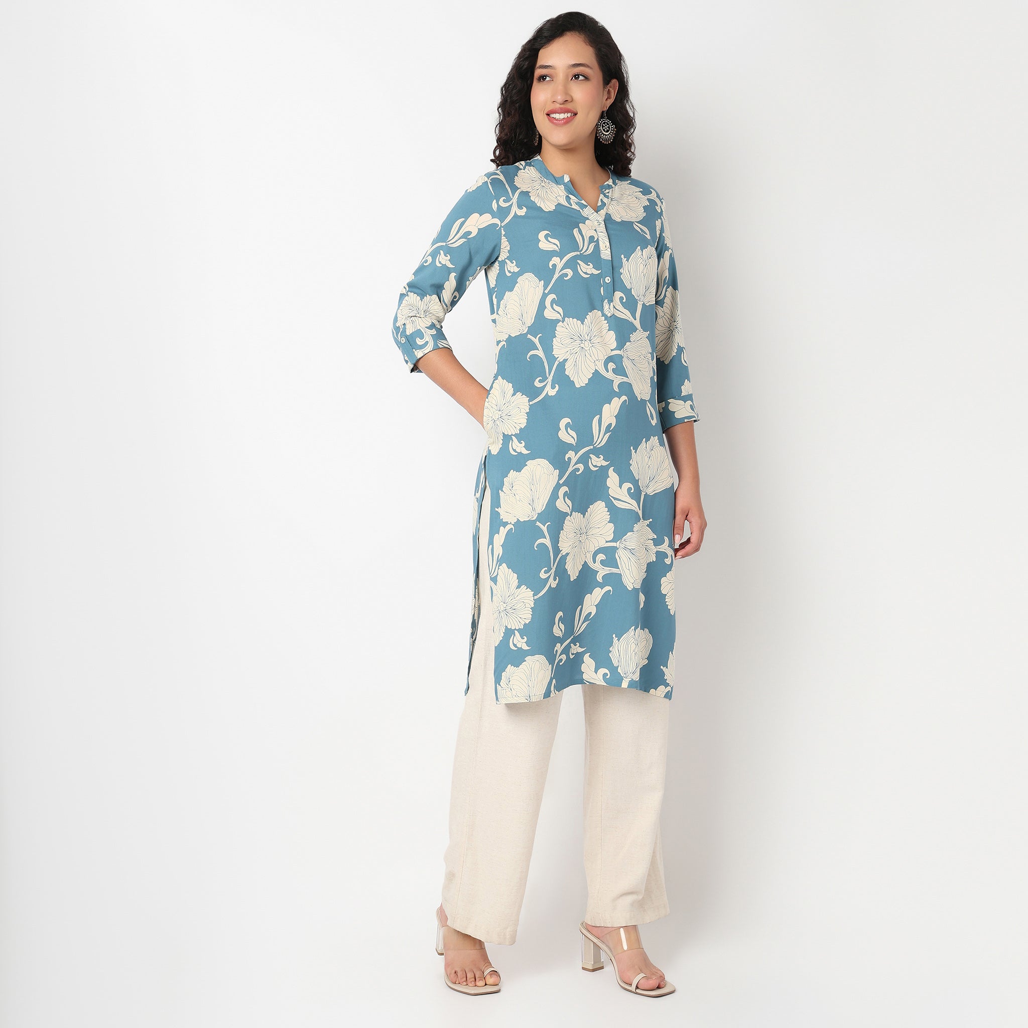 Elevate your wardrobe with our Round Neck With Slit Long Kurta, designed for the modern woman. Crafted from soft rayon, this knee-length kurta features a stunning printed pattern that adds a touch of elegance to any occasion.