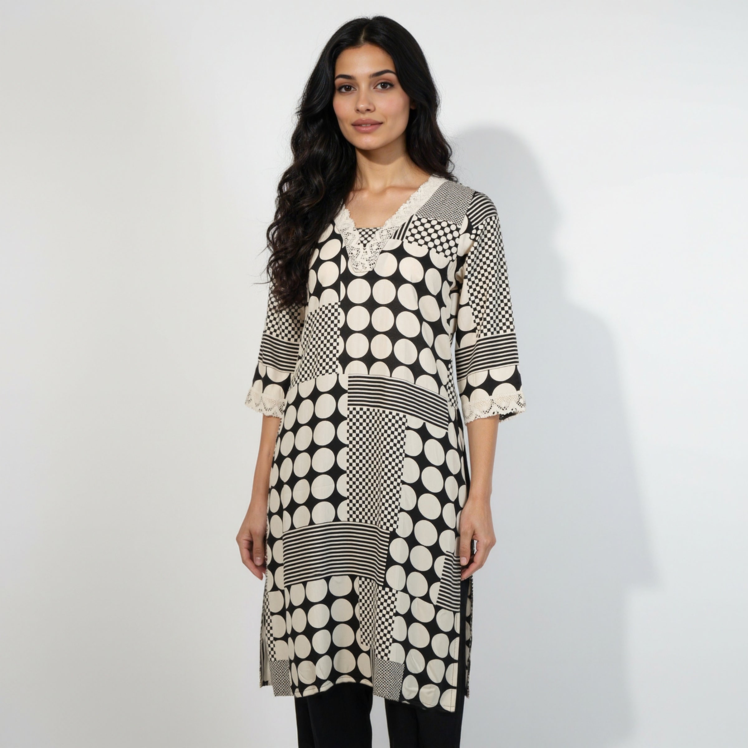 Experience the perfect blend of comfort and style with our V-Neck Printed Kurta. Crafted from 100% rayon, this kurta offers a soft, breathable feel that keeps you comfortable all day long. The elegant printed pattern adds a touch of sophistication, making it versatile enough for both casual outings and more formal occasions. The straight fit ensures a flattering silhouette that complements all body types.