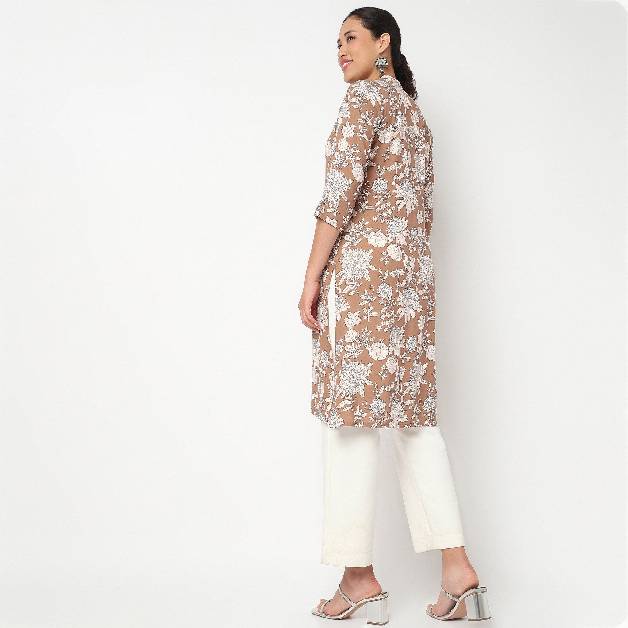 - Designed with a straight fit and three-fourth sleeves for a flattering silhouette and ease of movement.