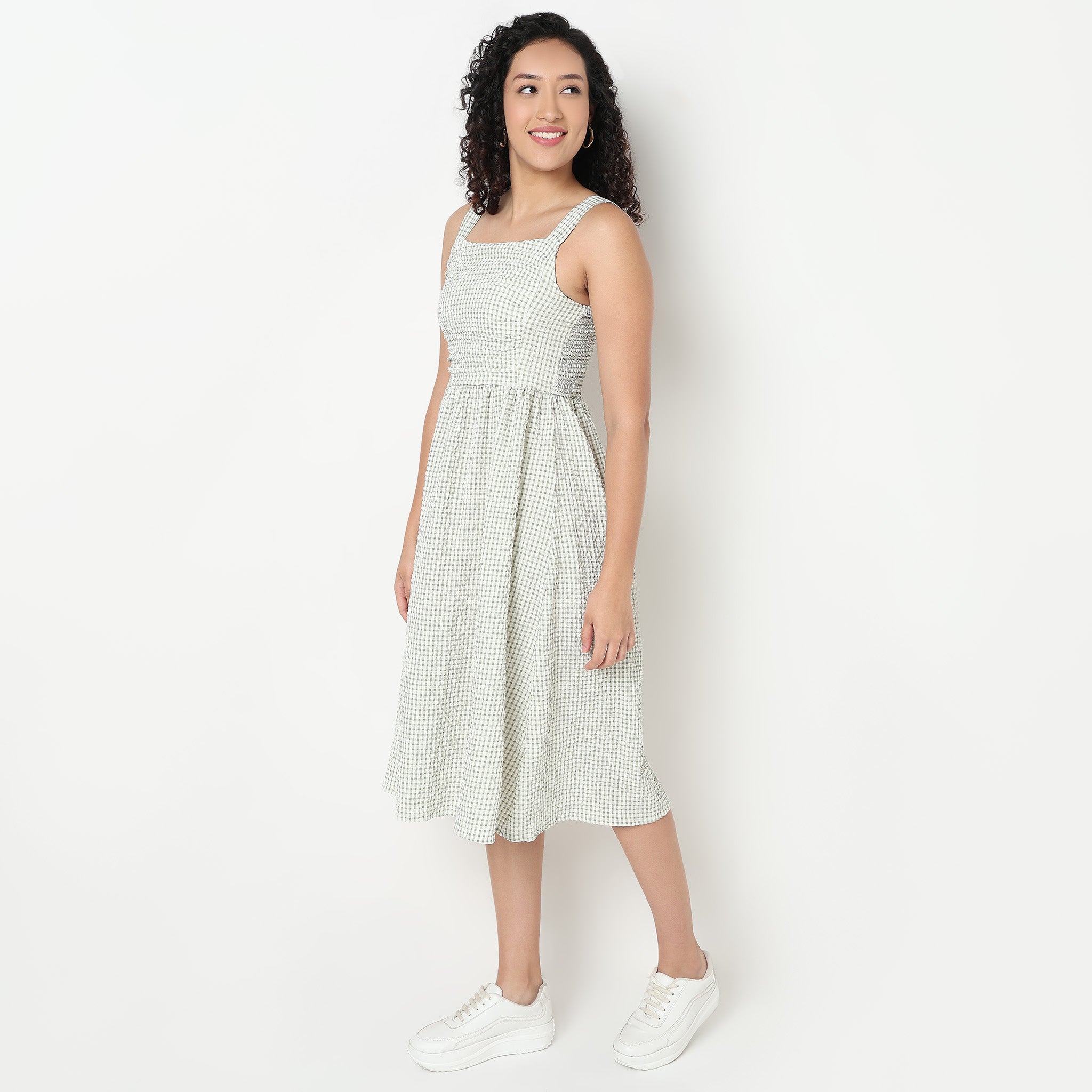Step into effortless elegance with our Checkered Flared Strappy Dress. Crafted from a luxurious blend of polyester and elastane, this dress offers a perfect balance of comfort and style. The checkered pattern adds a timeless charm, while the flared cut provides a flattering silhouette that moves gracefully with you. Whether you're attending a casual brunch or an evening soirée, this dress is your go-to choice for any occasion.