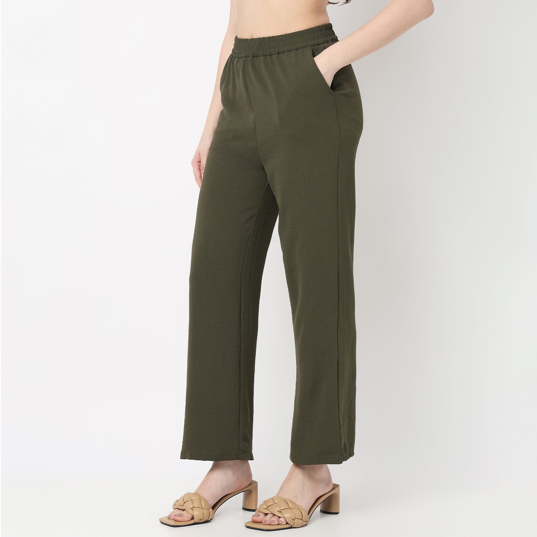 Elevate your wardrobe with our Womens Palazzo in Olive Green. This mid-rise, ankle-length palazzo is crafted from high-quality woven polyester for a comfortable and stylish fit. Perfect for any occasion, it combines elegance with versatility.