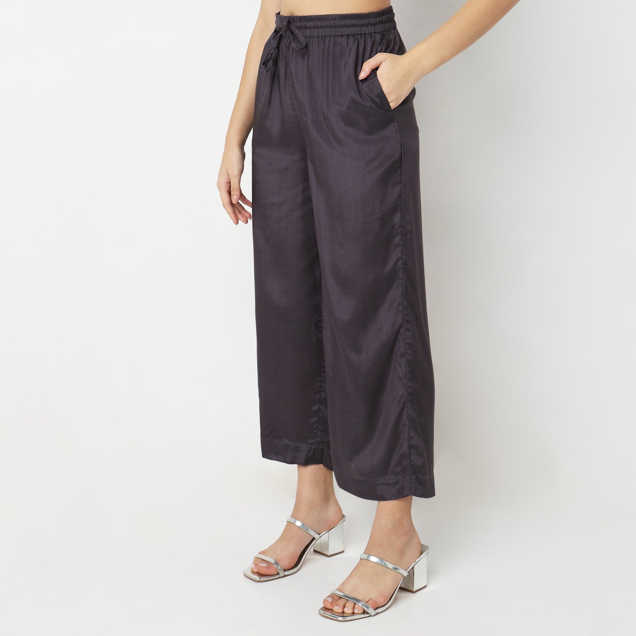 These solid pattern mid flare palazzos has full length, mid rise waist. Made from viscose, it is soft and comfortable to wear.