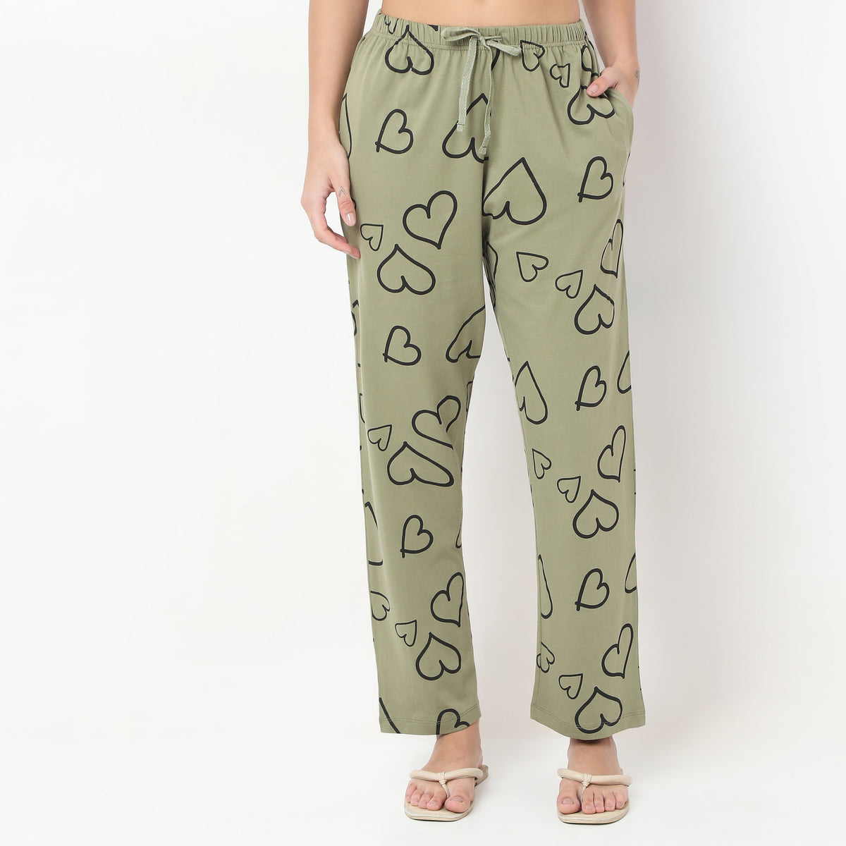These printed pattern regular fit pyjamas has full length, mid rise waist. Made from cotton, it is soft and comfortable to wear.