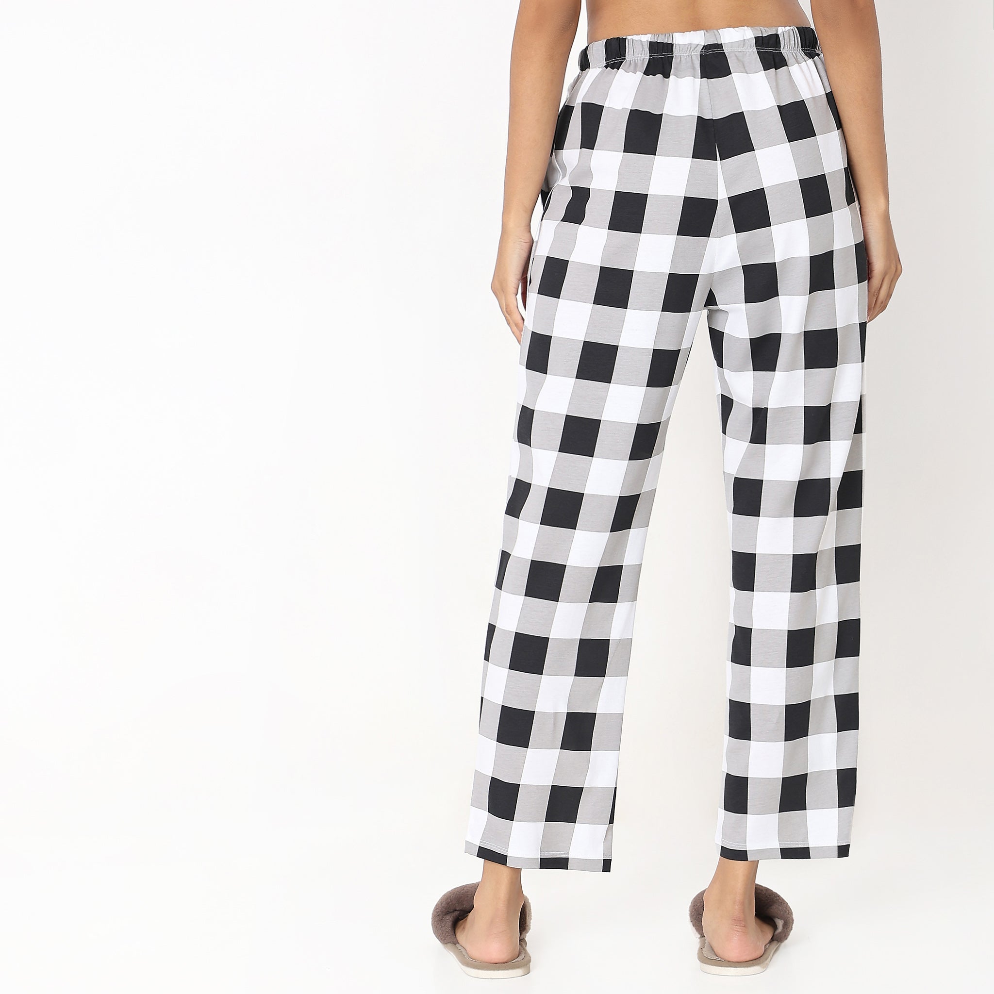 These printed pattern regular fit pyjamas has full length, mid rise waist. Made from cotton, it is soft and comfortable to wear.