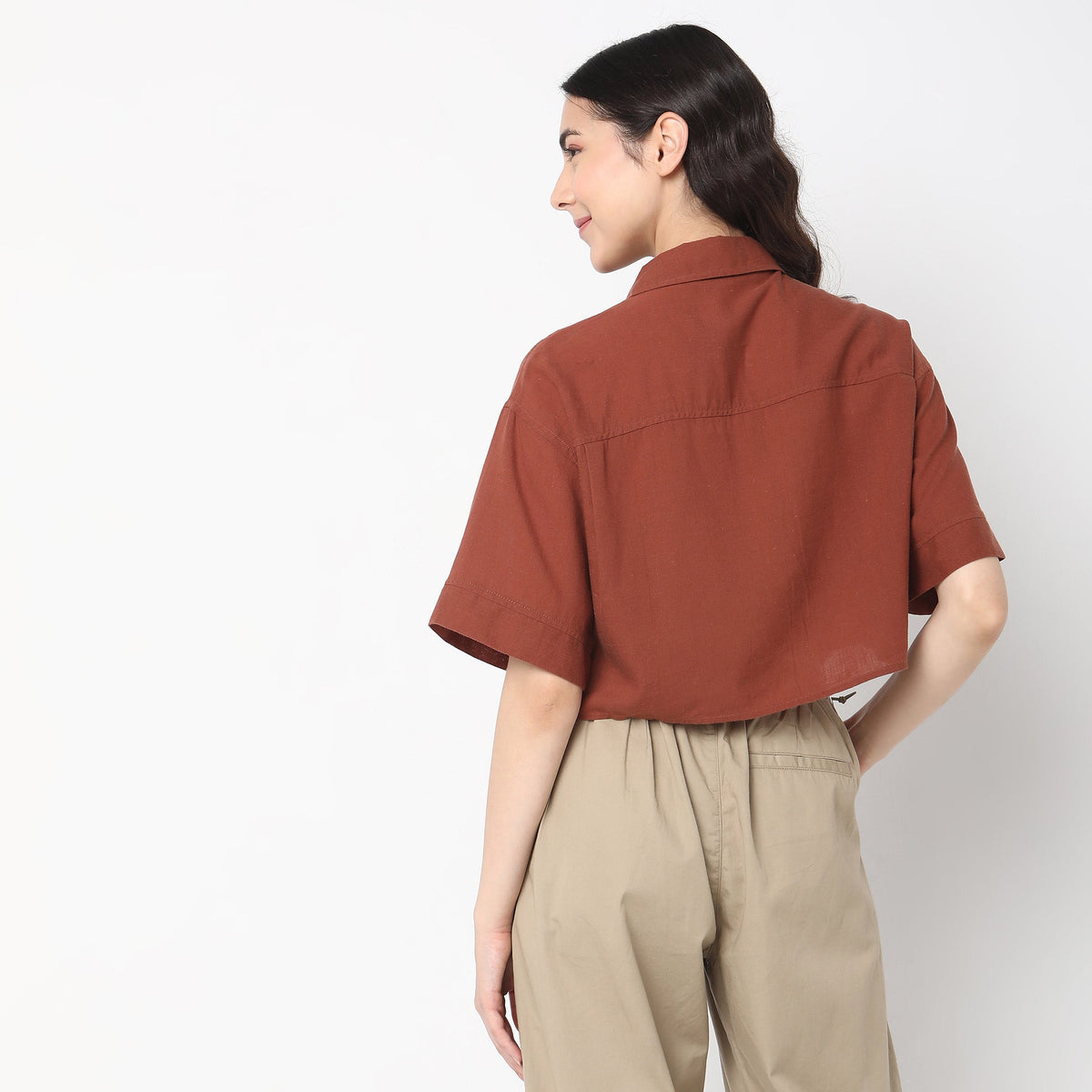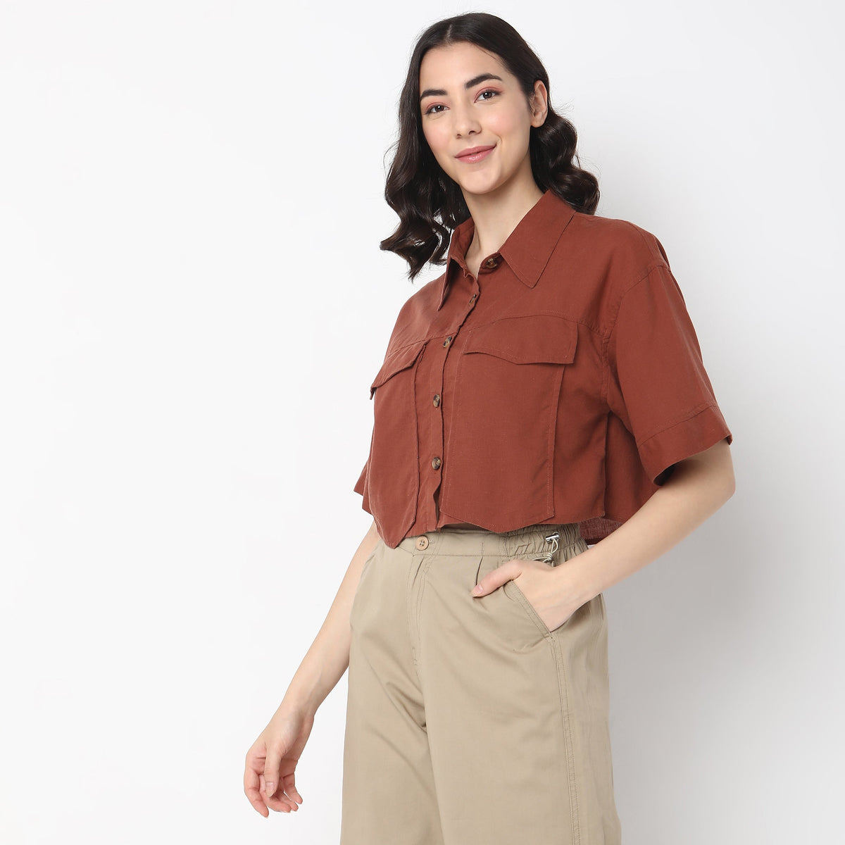 This solid pattern shirts has a shirt collar and short sleeve. Made from lyocell cotton , it is soft and comfortable to wear.
