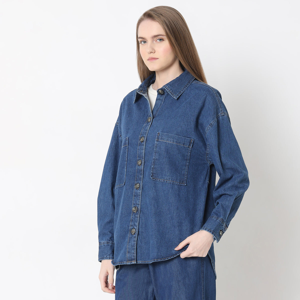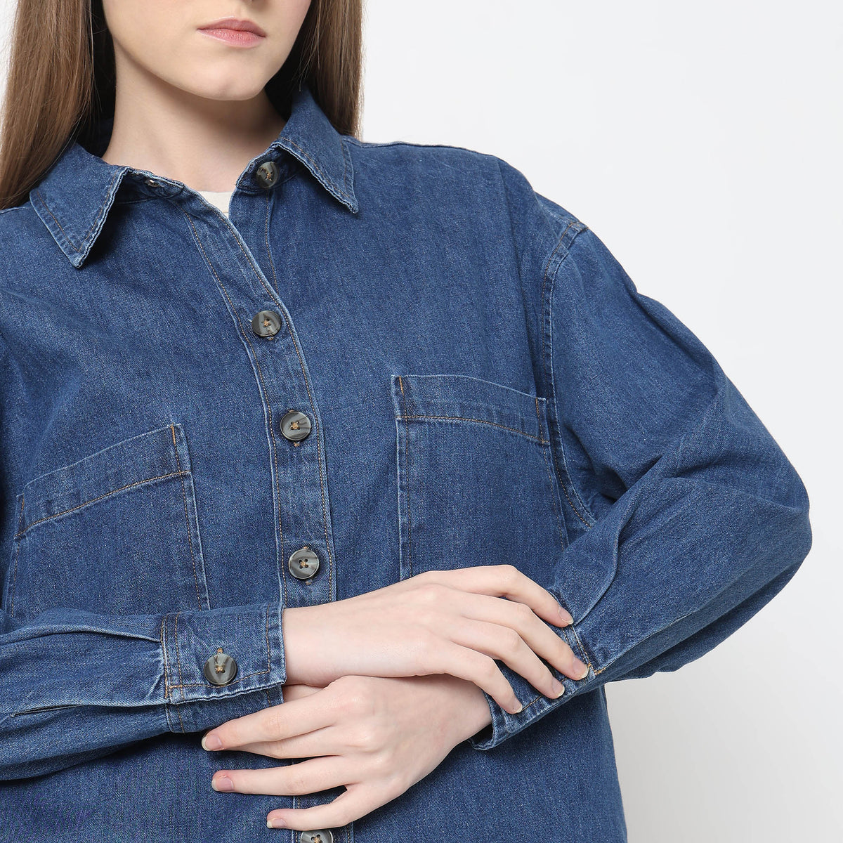 This solid pattern shirt has a shirt collar and full sleeve. Made from cotton, it is soft and comfortable to wear.