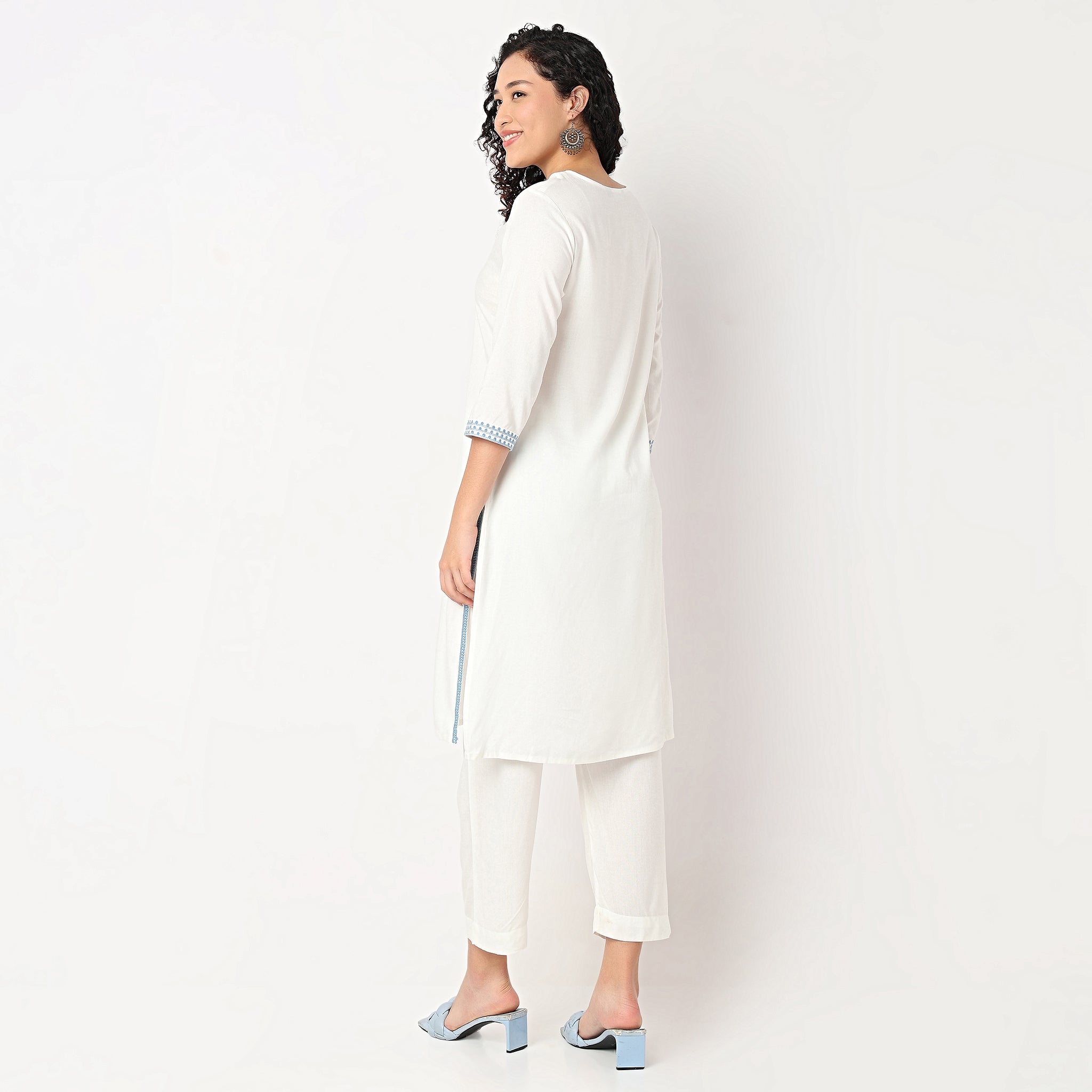 Experience the perfect blend of elegance and comfort with our Embroidered Kurta Pant Set. Crafted from 100% Rayon, this set offers a soft, breathable feel that keeps you comfortable all day long. The intricate embroidery adds a touch of sophistication, making it ideal for both casual outings and festive occasions. The below-knee length and straight fit provide a flattering silhouette that suits all body types.