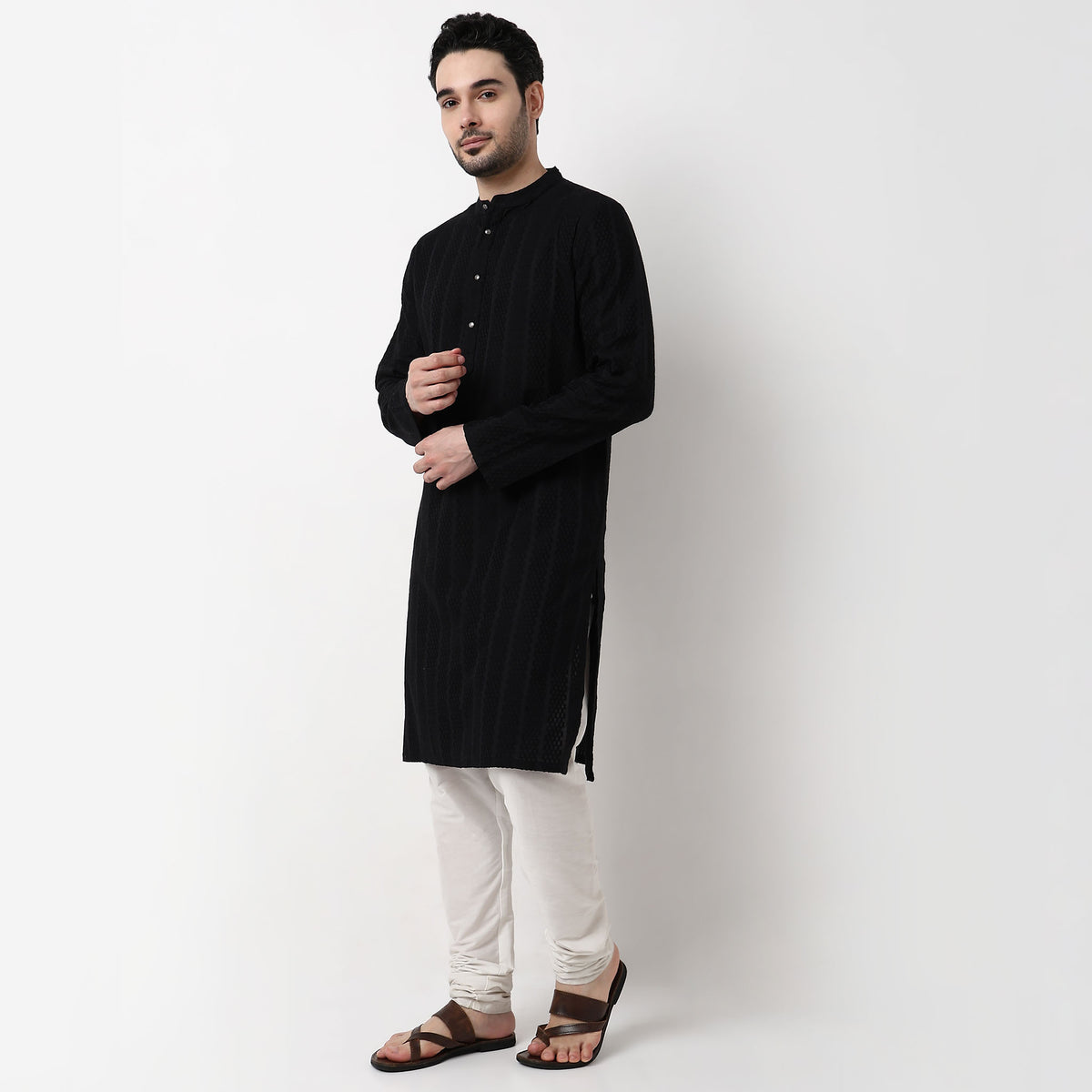 Experience the perfect blend of tradition and comfort with the Lapet Long Kurta. Crafted from 100% cotton, this kurta offers a breathable and soft touch against your skin, making it ideal for all-day wear. The woven texture adds a touch of elegance, while the lapet pattern brings a unique flair to your wardrobe. With its knee-length design and mandarin collar, this kurta is versatile enough for both casual outings and formal gatherings.