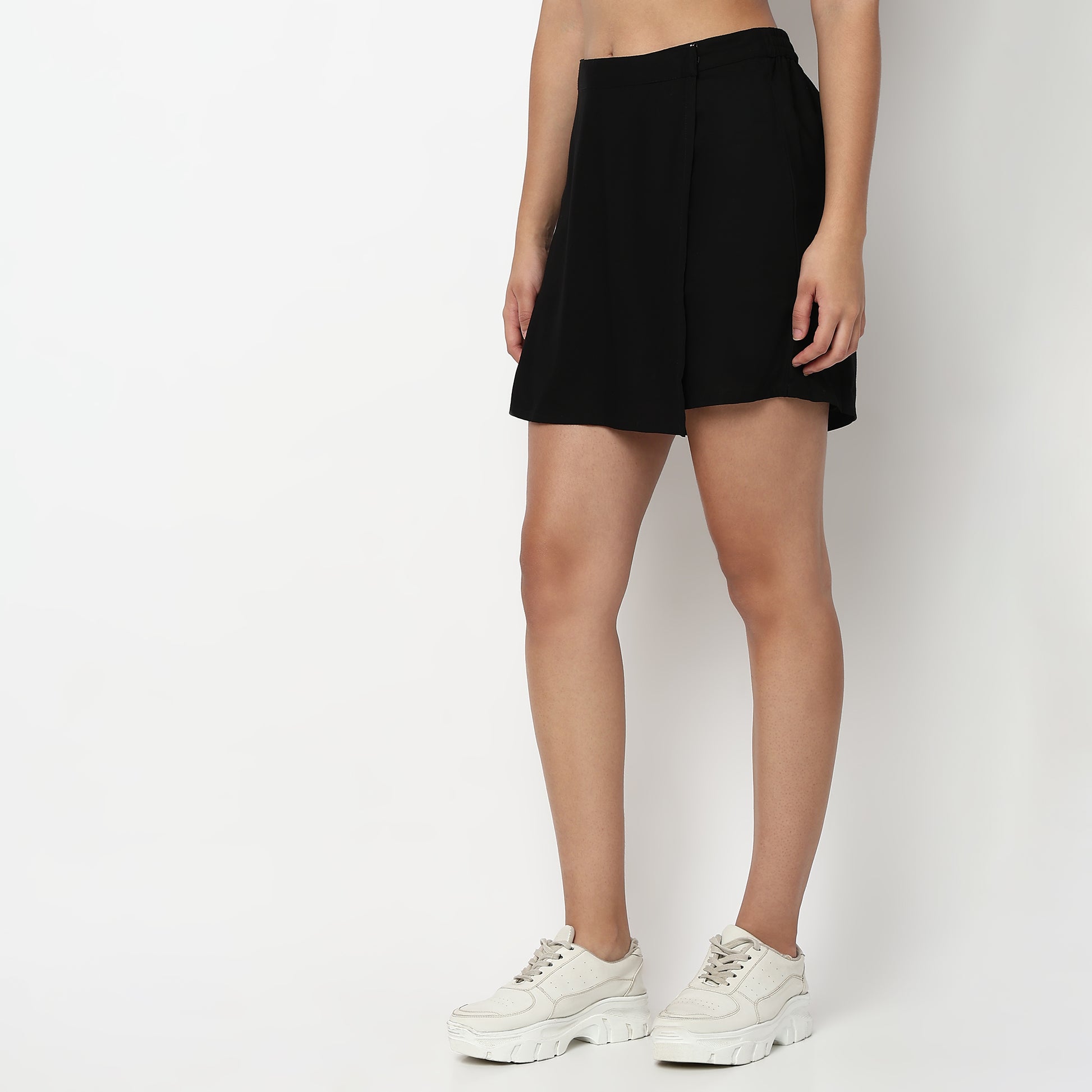 Experience the perfect blend of comfort and style with our Straight Fit High Rise Shorts. Crafted from 100% Rayon, these shorts offer a soft, breathable feel that keeps you cool and comfortable all day long. The solid pattern and above-knee length make them a versatile addition to your wardrobe, perfect for casual outings or a relaxed day at home.
