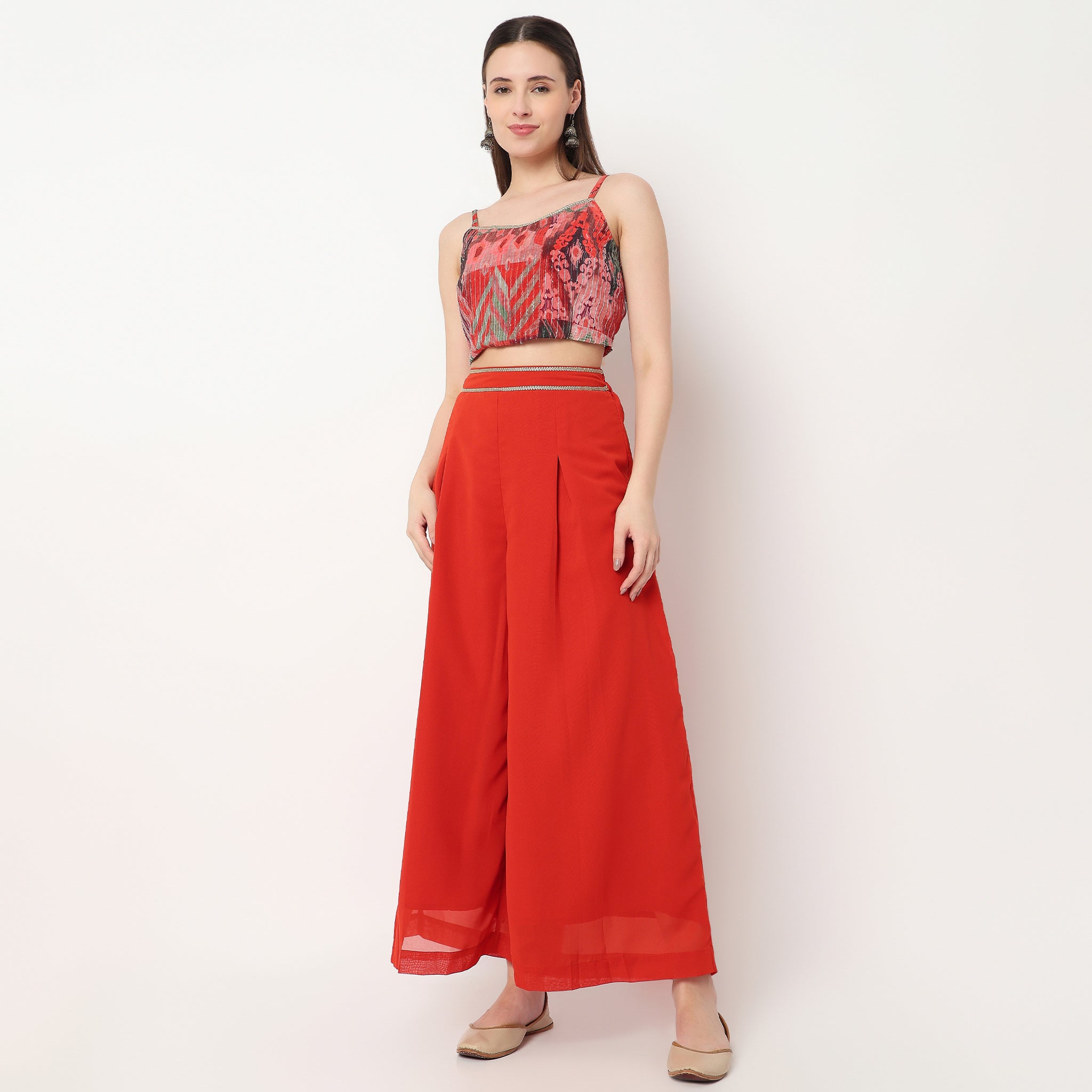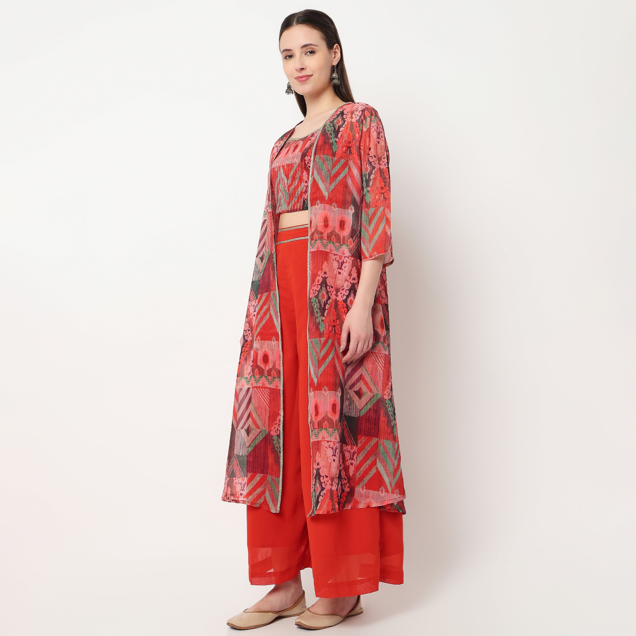 Experience the perfect blend of style and comfort with our Printed Crop Top Palazzo Shrug Set. Crafted from 100% polyester, this ensemble offers a lightweight feel that drapes beautifully, making it ideal for both casual outings and special occasions. The high-rise palazzo pants and flared cut provide a flattering silhouette, while the sleeveless crop top with a square neck adds a touch of modern elegance. Whether you're heading to a brunch or an evening gathering, this set ensures you stand out with its vibrant prints and chic design.