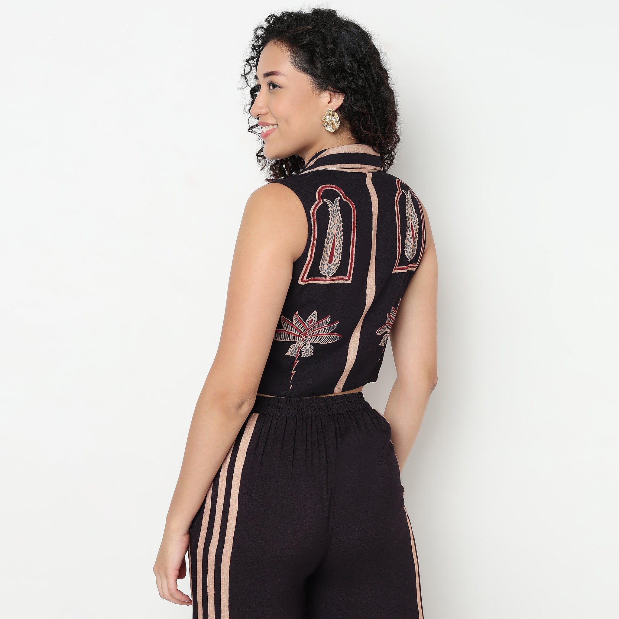 Experience the perfect blend of style and comfort with our Printed Lapel Collar Crop Top. Crafted from 100% Rayon, this top offers a soft, breathable feel that keeps you cool and comfortable all day long. The woven fabric ensures durability, while the slim fit provides a modern, stylish look that flatters your silhouette.