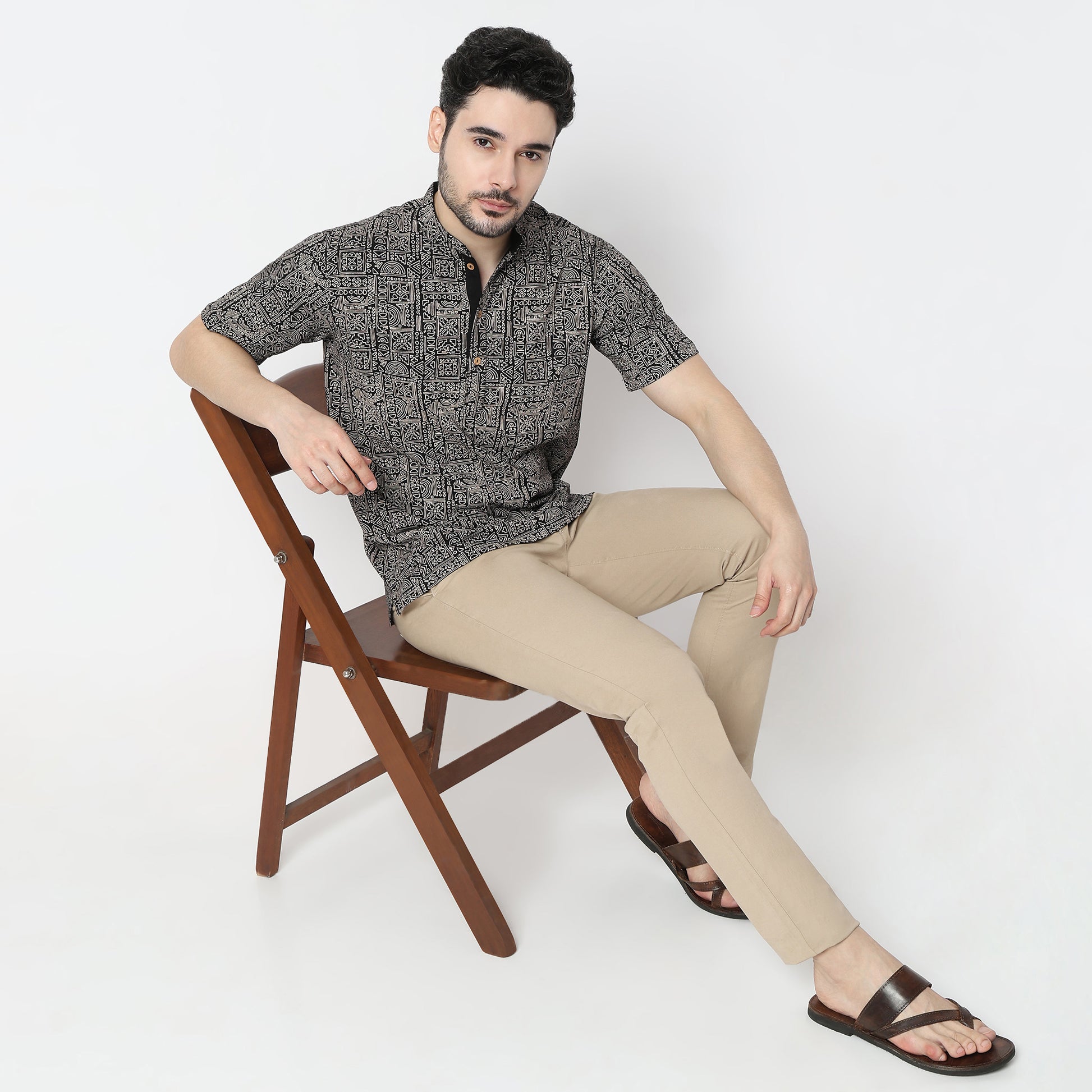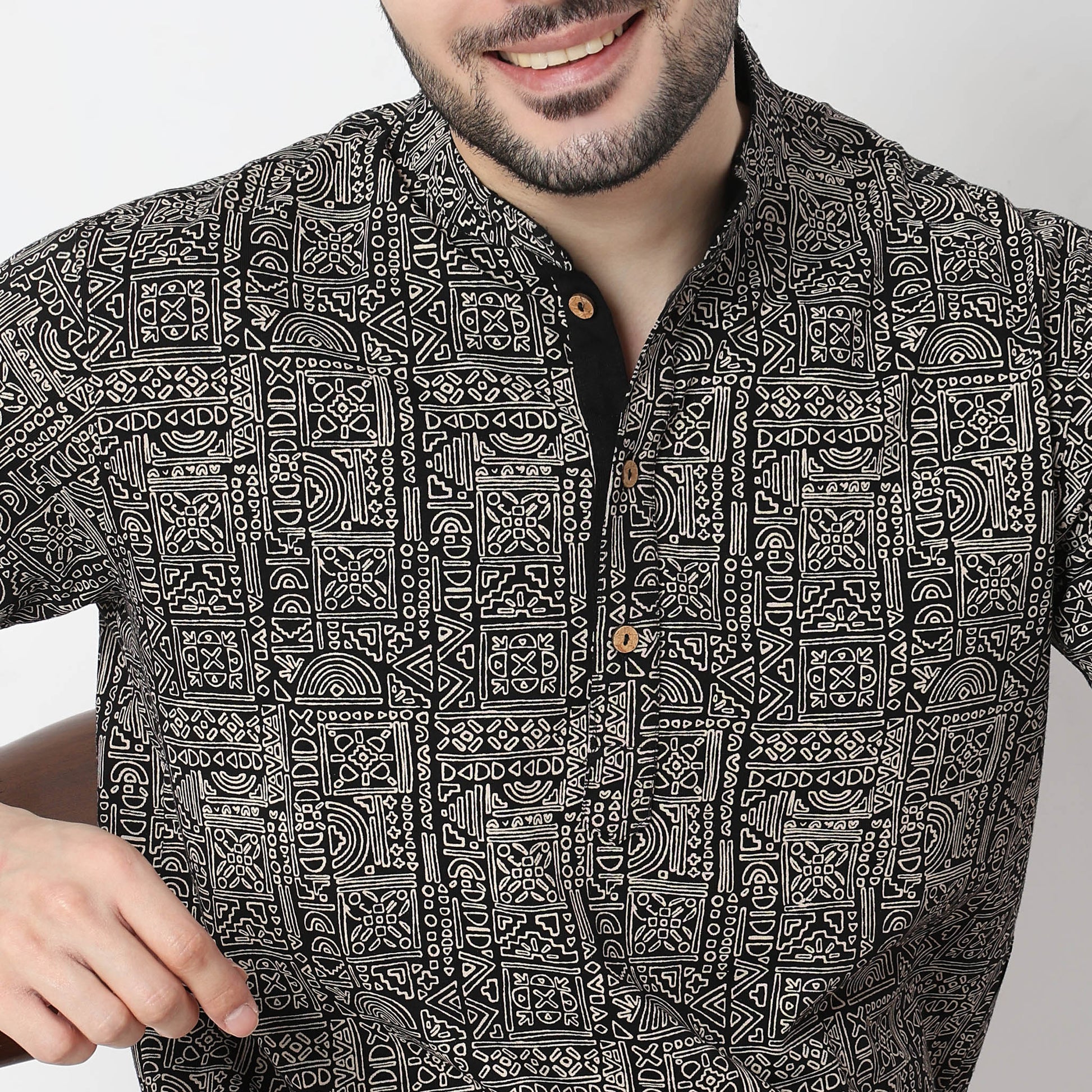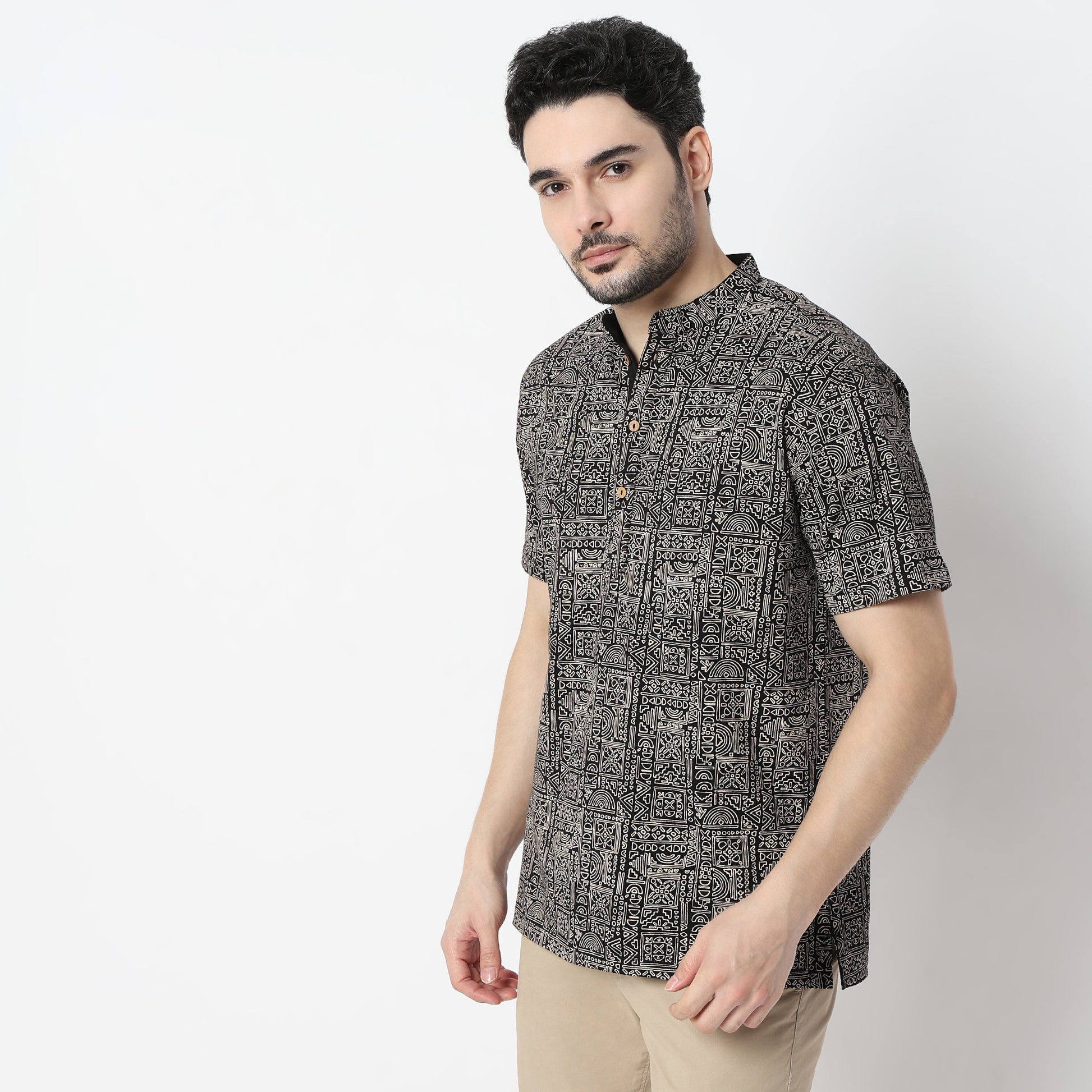 Printed Half Sleeve Mandarin Collar Knit Short Kurta