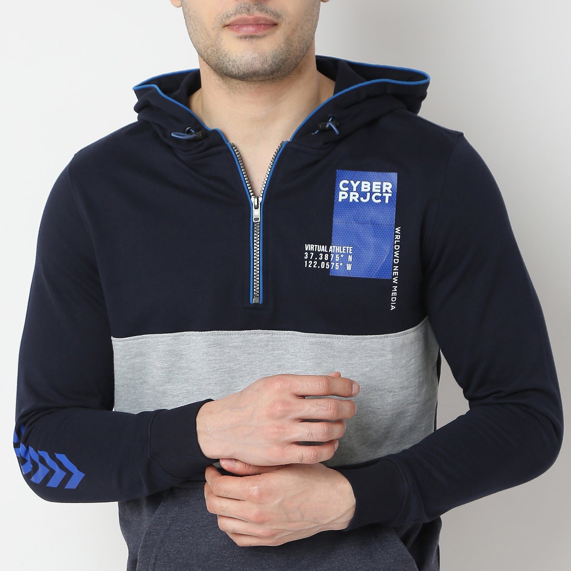 This solid pattern sweatshirt has a hoodie and full sleeve. Made from cotton polyester, it is soft and comfortable to wear.