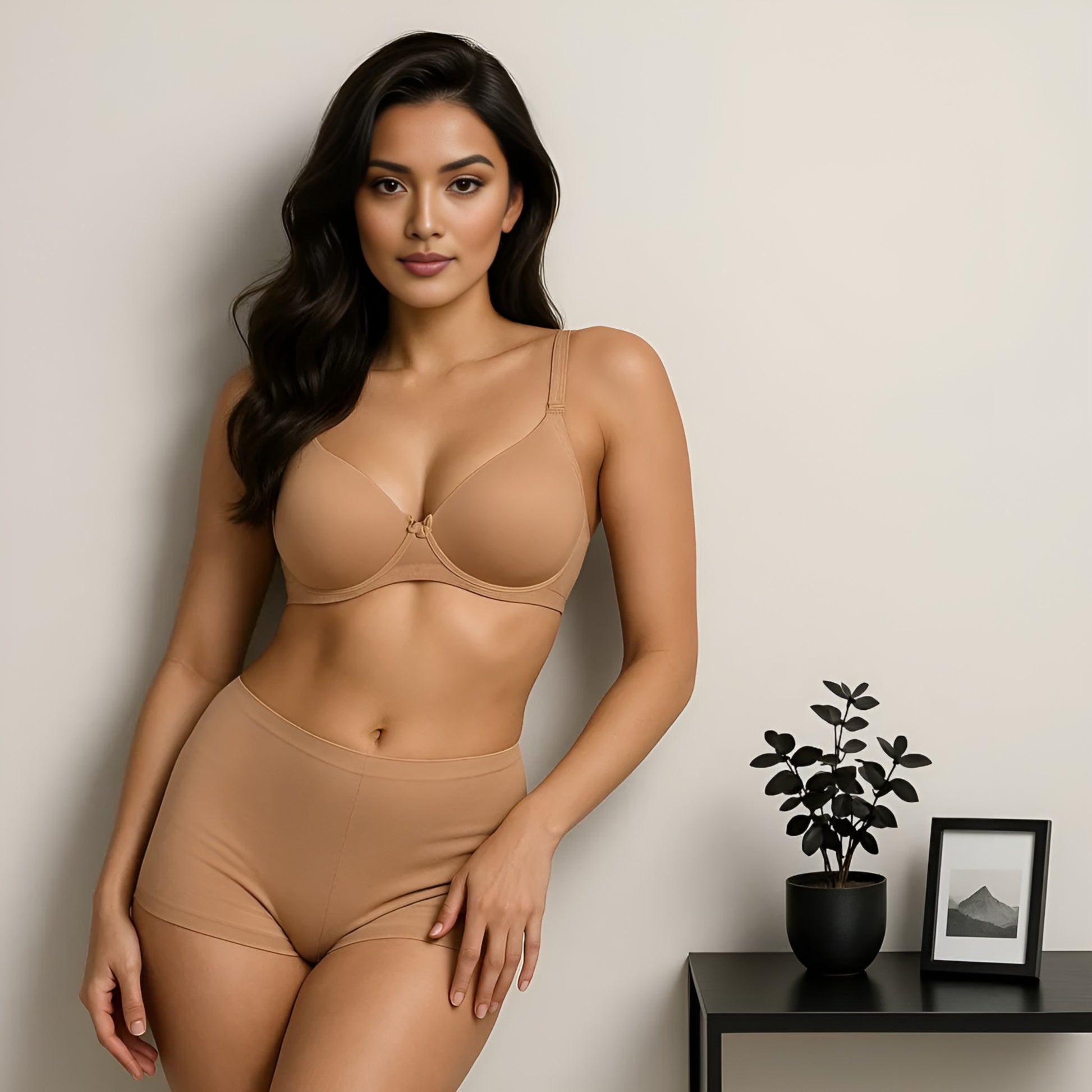 Full Coverage Padded Non Wired Nylon Spandex Tshirt Bra
